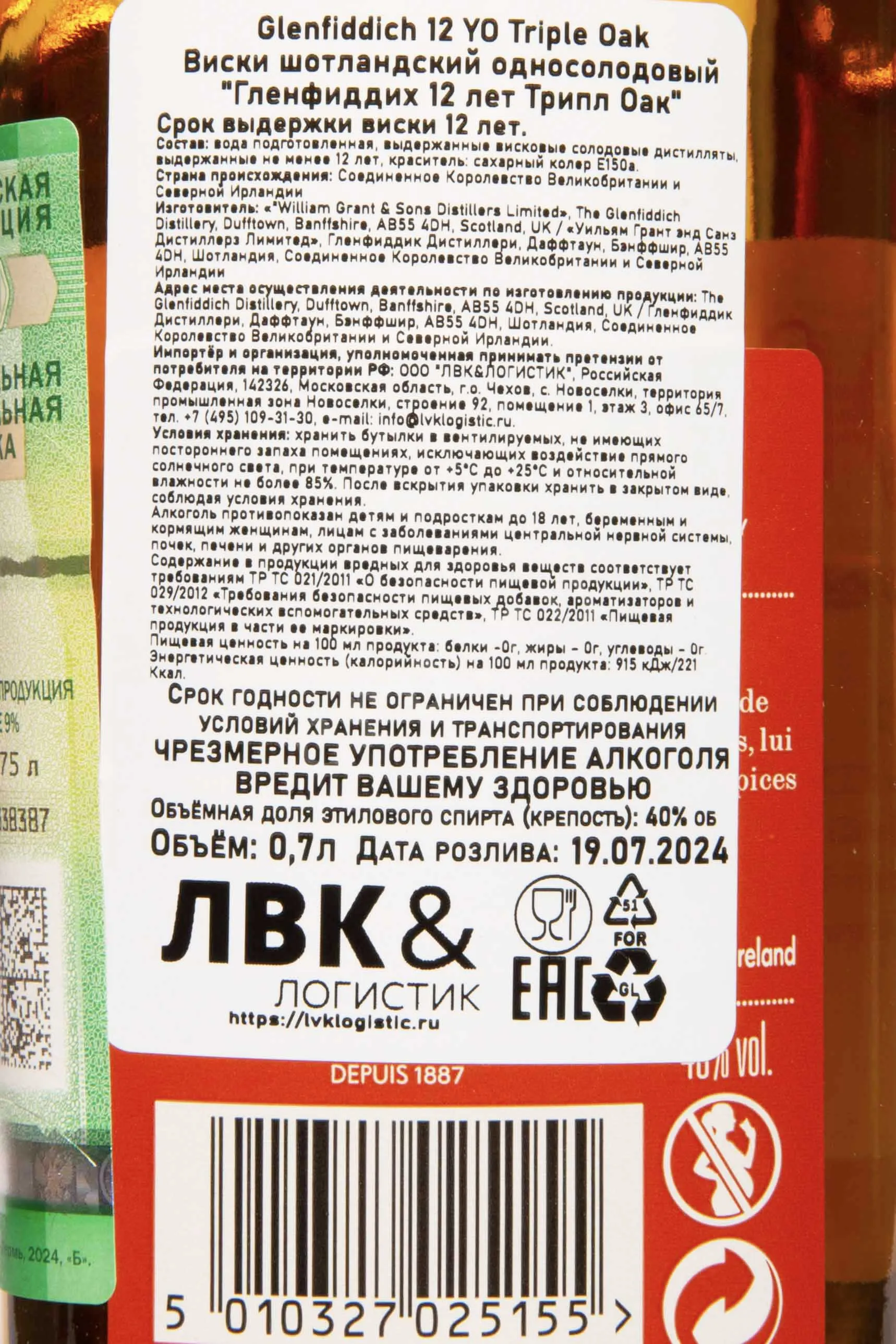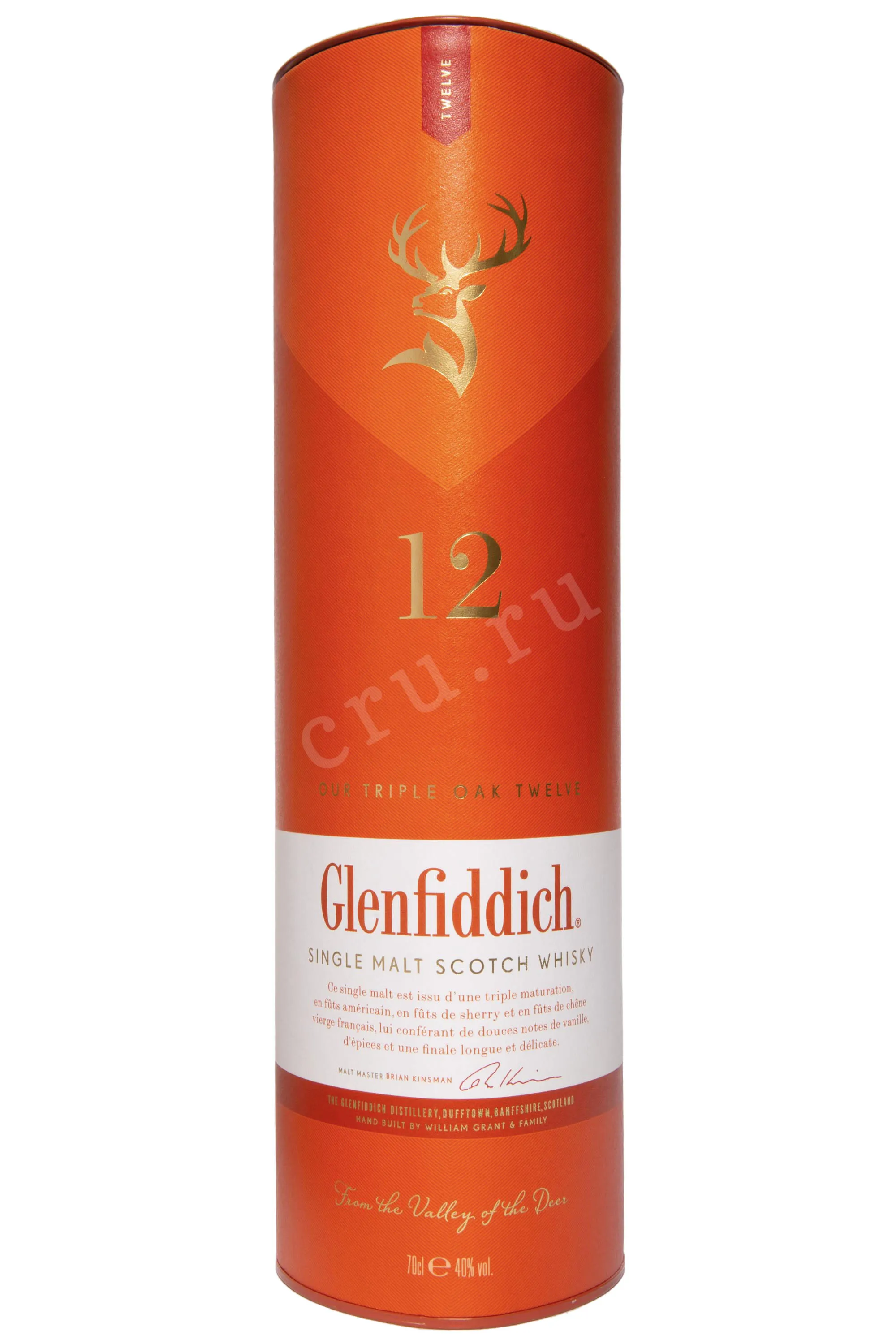 Виски Glenfiddich Single Malt Triple Oak Valley Of the Deer in tube — выдержанный односолодовый скотч, созданный методом тройной бочковой экспозиции: он вызревал в американских бочках из-под бурбона, хересных барриках и редких французских баррелях. Такая комбинация подчёркивает природный характер Хайленда, где для производства используют минерализованную родниковую воду и ячмень, выращенный на прохладных северных почвах. Терруар придаёт напитку элегантный баланс силы и мягкости, а тщательная селекция спиртов формирует выразительный профиль со сложной текстурой.
