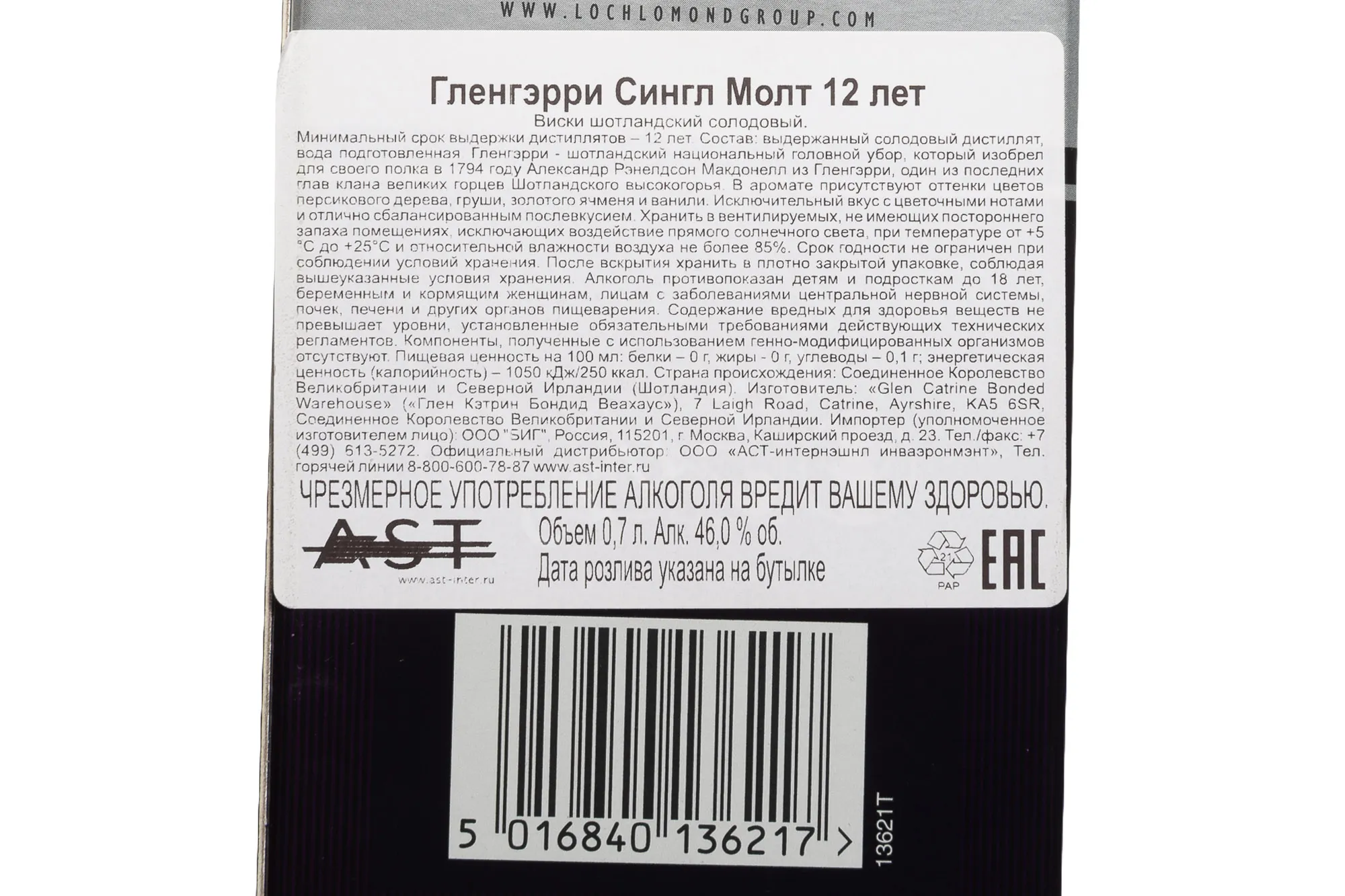 Виски Glengarry 12 Years Old gift box 0.7 l – это зрелый односолодовый алкоголь от шотландского производителя, выпускаемый в фирменном сувенирном боксе. 40-процентный напиток изготавливают традиционным методом двойной перегонки с последующим созреванием спиртов в дубовых тарах трех типов: из-под бурбона, повторного наполнения и обожженных изнутри. 12-летний виски был отмечен серебряными и золотыми медалями на дегустационных конкурсах в Лондоне и Сан-Франциско.