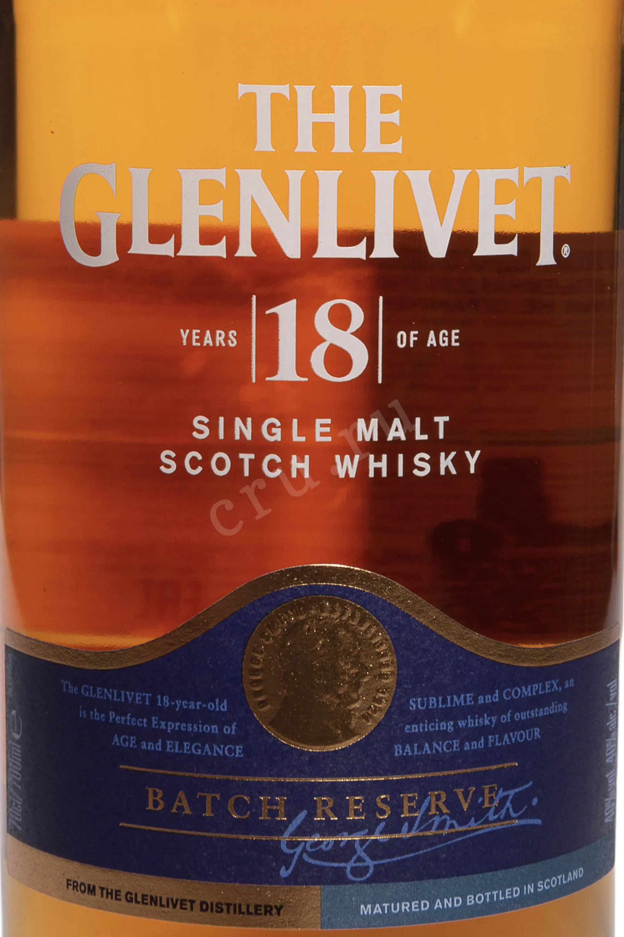 Виски Glenlivet 18 лет 0,7 л — великолепно сбалансированный и элегантный односолодовый скотч премиум-класса. Создан мастером-дистиллером Аланом Винчестером, который комбинировал разные бочки: из американского дуба (экс-бурбонные) и из европейского (экс-хересные). Благодаря этому сингл молт приобрел богатую ароматическую палитру и глубокий вкус. Гленливет 18-летний многократно удостаивался престижных международных наград, в том числе медалей на конкурсах International Wine & Spirit Competition («Лучший в своем классе»), International Spirits Challenge и San Francisco World Spirits Competition.
