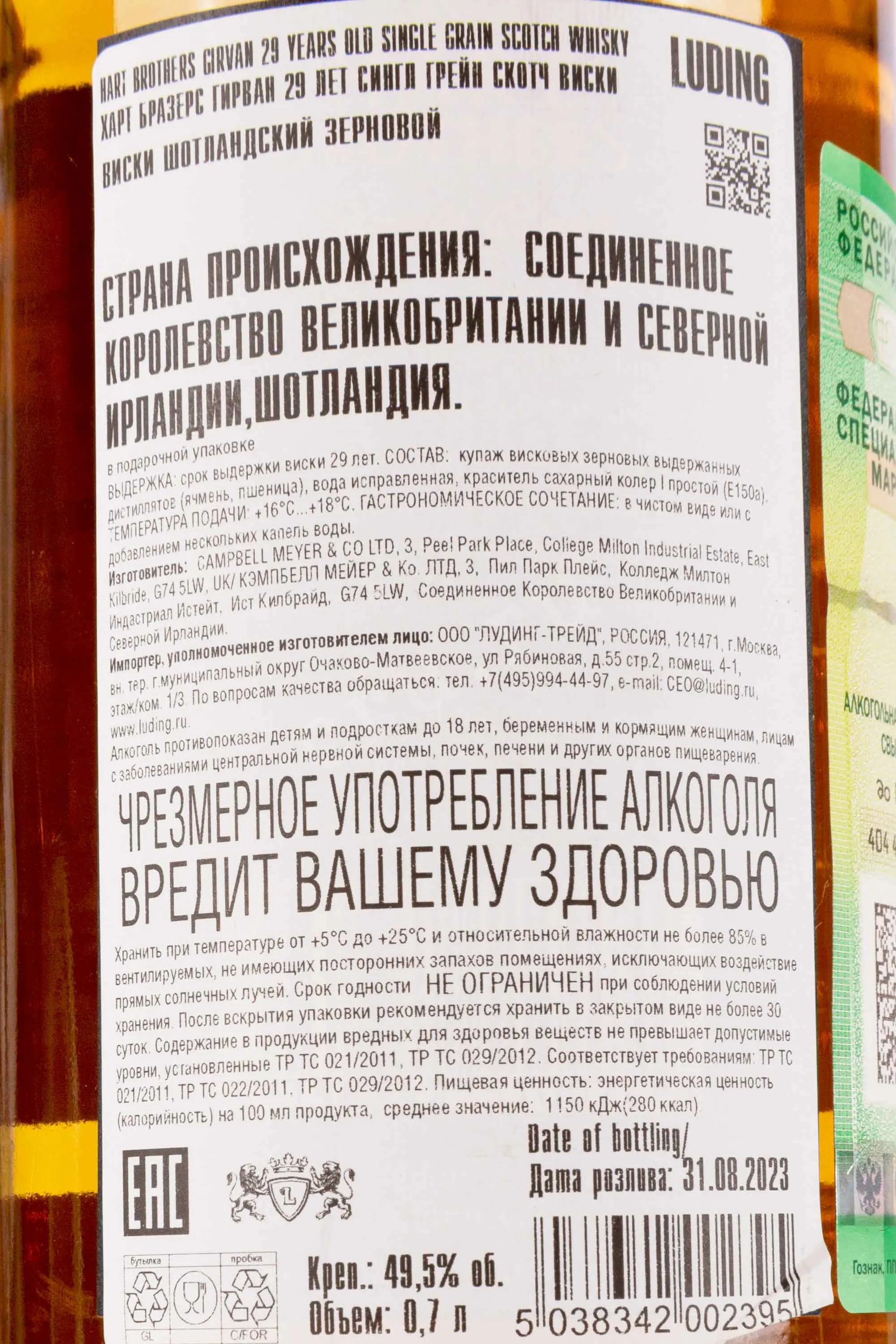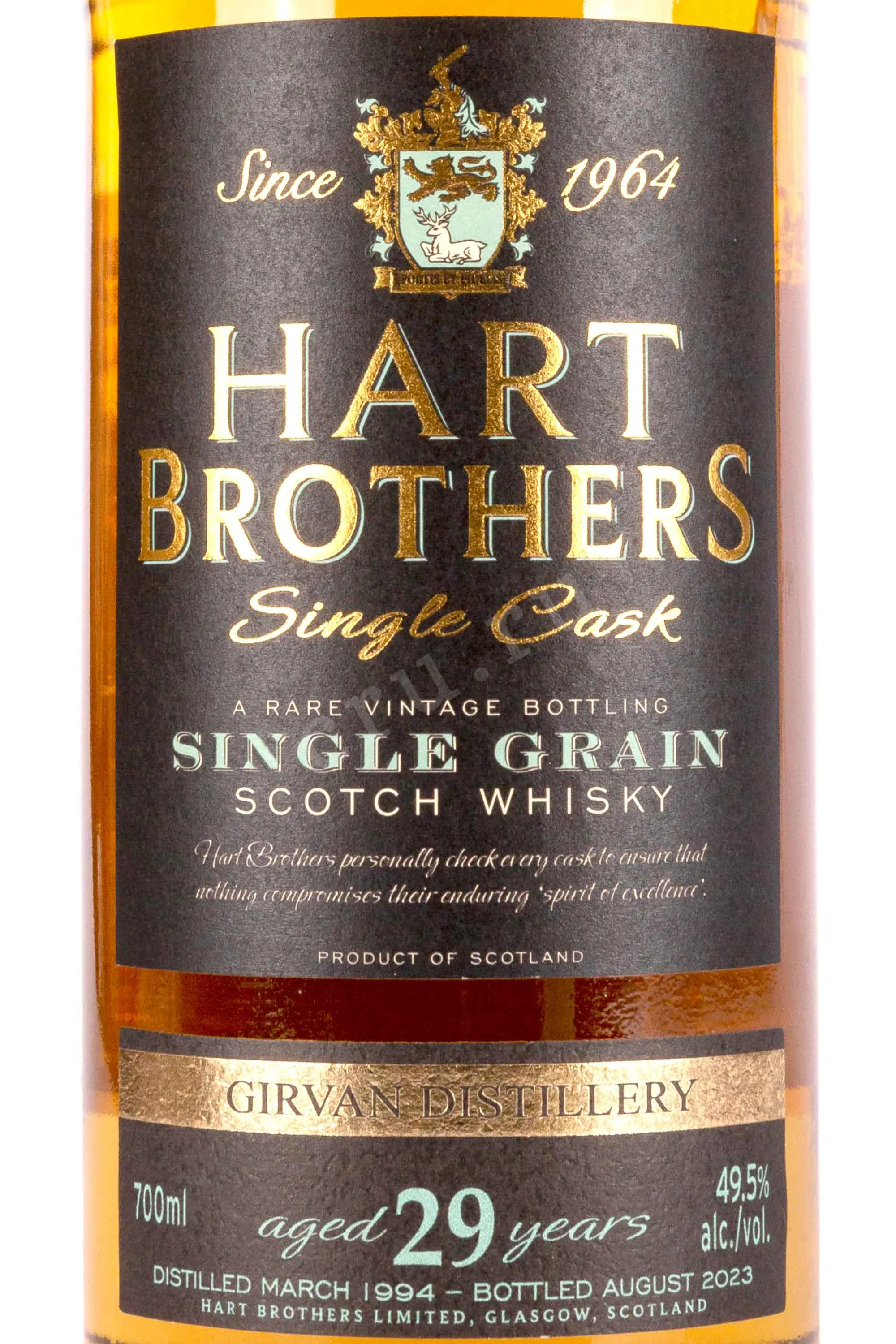 Виски Hart Brothers Girvan Single Grain 29 лет 0,7 л в тубе — это премиальный шотландский однозерновой скотч, выдержанный в течение долгого времени в дубе. Производство осуществляется дистиллерией, известной своими инновационными технологиями и высоким качеством спиртов. Основой для напитка послужил ячмень и другие злаковые культуры, которые после сбраживания прошли тщательную перегонку в колоннах непрерывного действия. Этот способ дистилляции позволяет получить более чистый и мягкий дистиллят, подходящий для длительного созревания. Выдержка проходила на протяжении 29 лет в тщательно отобранных бочках. Ограниченная серия, изящное оформление и солидный возраст делают этот купаж уникальным коллекционным продуктом для знатоков и ценителей.