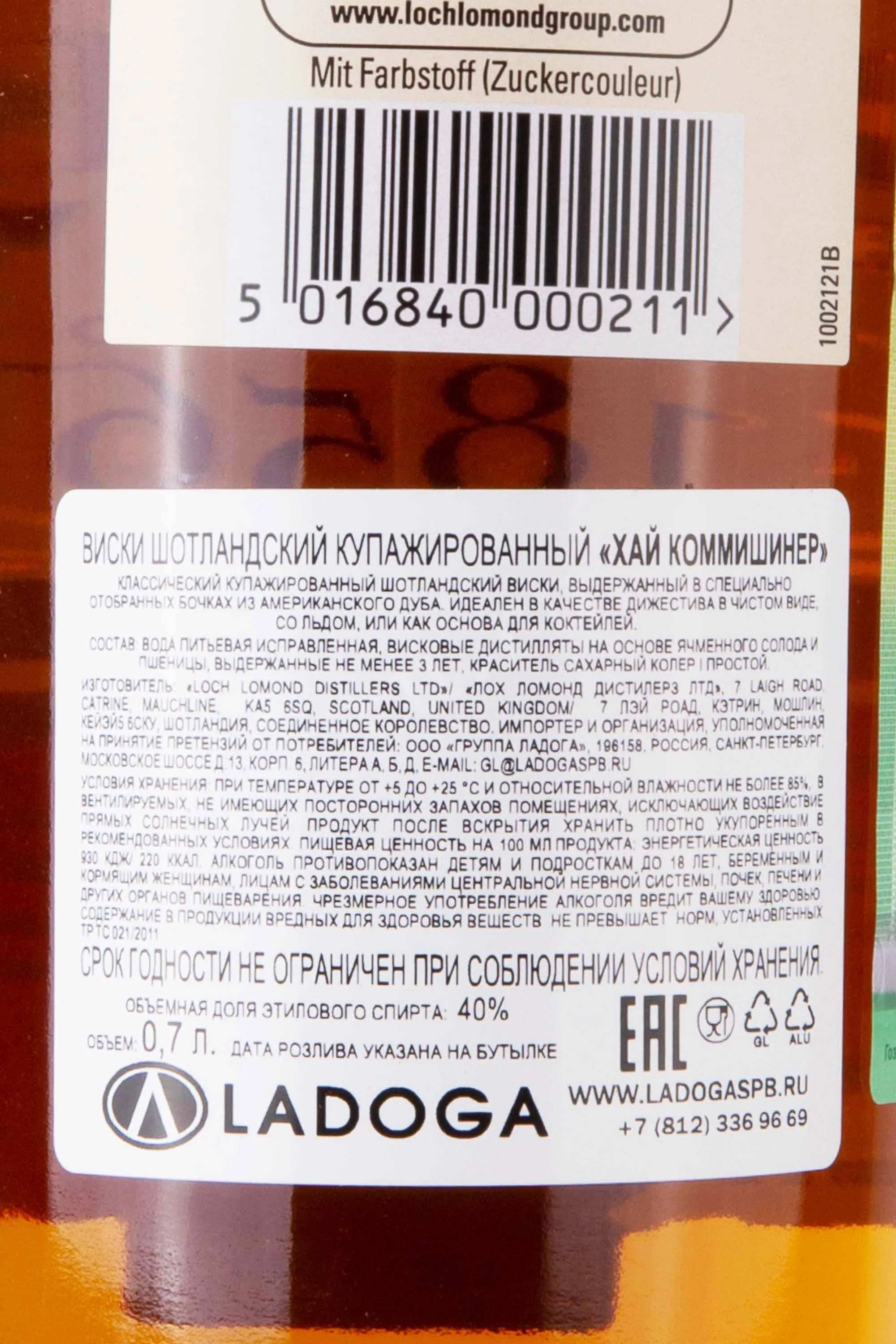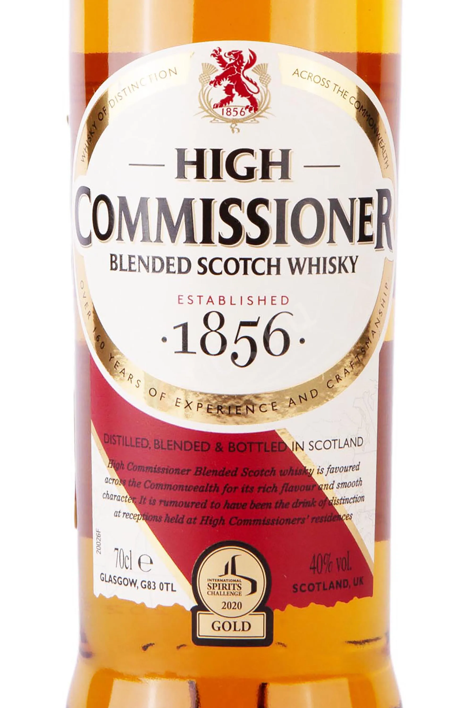 Виски High Commissioner 0,7 л — купажированный скотч производства компании Loch Lomond Group. Этот напиток создается путем смешивания тщательно отобранных зерновых и солодовых спиртов, полученных методом двойной перегонки. Созревание проходит в дубовых бочках, что придает напитку мягкий вкус и характерные древесные ноты. Процесс купажа и разлива протекает в регионе Лоулендс на юге Шотландии. Бленд отмечен международными наградами, в том числе золотом на конкурсе San Francisco World Spirits Competition и серебром — на International Spirits Challenge.
