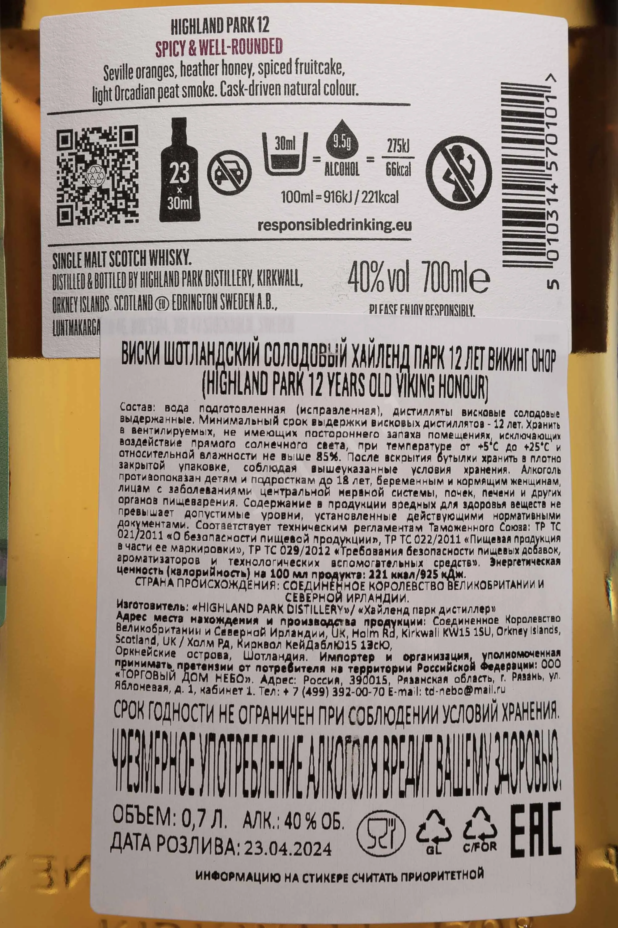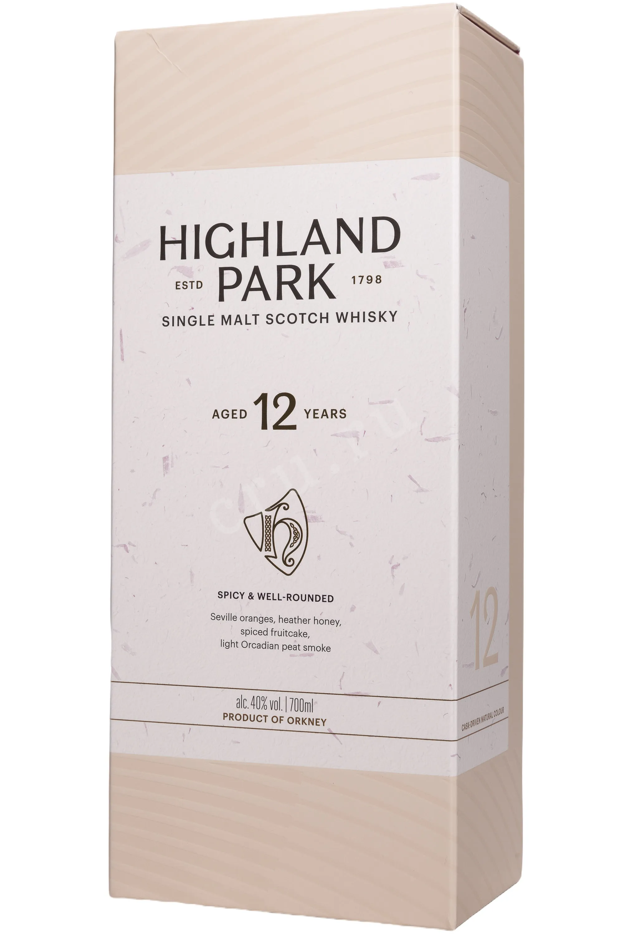 Виски Highland Park 12 лет 0,7 л в подарочной упаковке — шотландский сингл молт с Оркнейских островов. Производится традиционным способом: солод вручную просушивают на торфе, что придаёт напитку лёгкую дымность. Созревает 12 лет в дубовых бочках из-под испанского хереса, благодаря чему приобретает узнаваемый пряно-фруктовый характер. Элитный виски представлен в стильной подарочной коробке с кельтским орнаментом, подчёркивающим наследие бренда. Highland Park 12 лет регулярно получает высокие оценки от специалистов, например он завоевал золотую медаль на конкурсе World Whisky Awards.