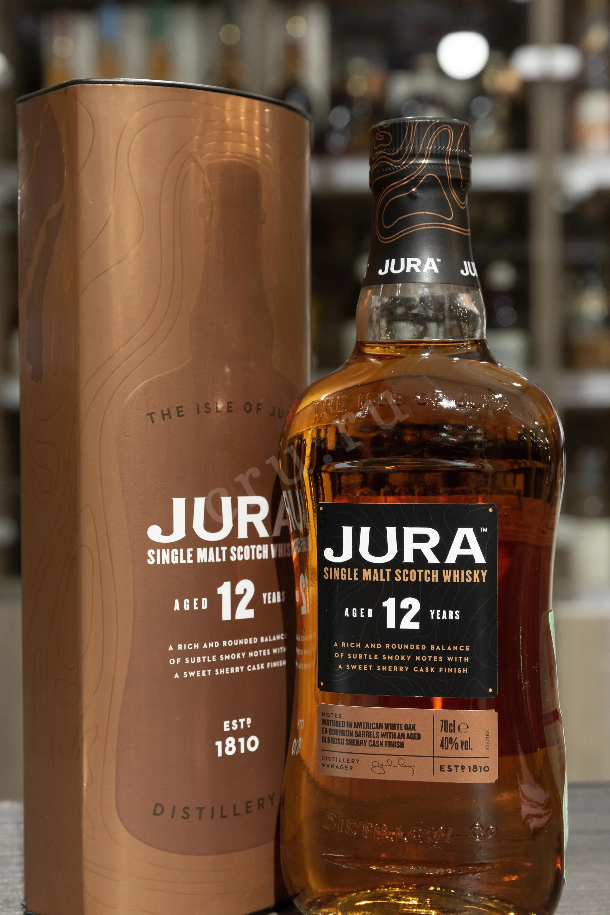 Виски Jura 12 years 0,7 л в подарочной упаковке — односолодовый шотландский спиртной напиток солидного возраста. Произведён он на острове Джура, известном сильными ветрами и морским бризом. До бутилирования дистиллят хранится в бочках из американского дуба и емкостях из-под хереса, которые придают его букету лёгкую сладость и мягкие древесные ноты.