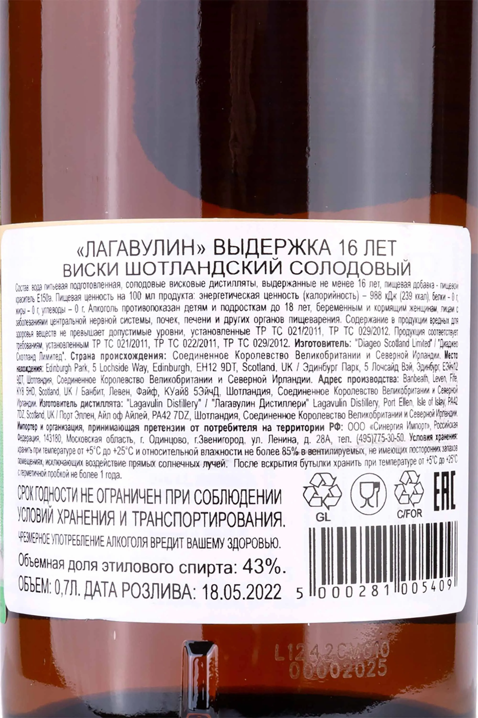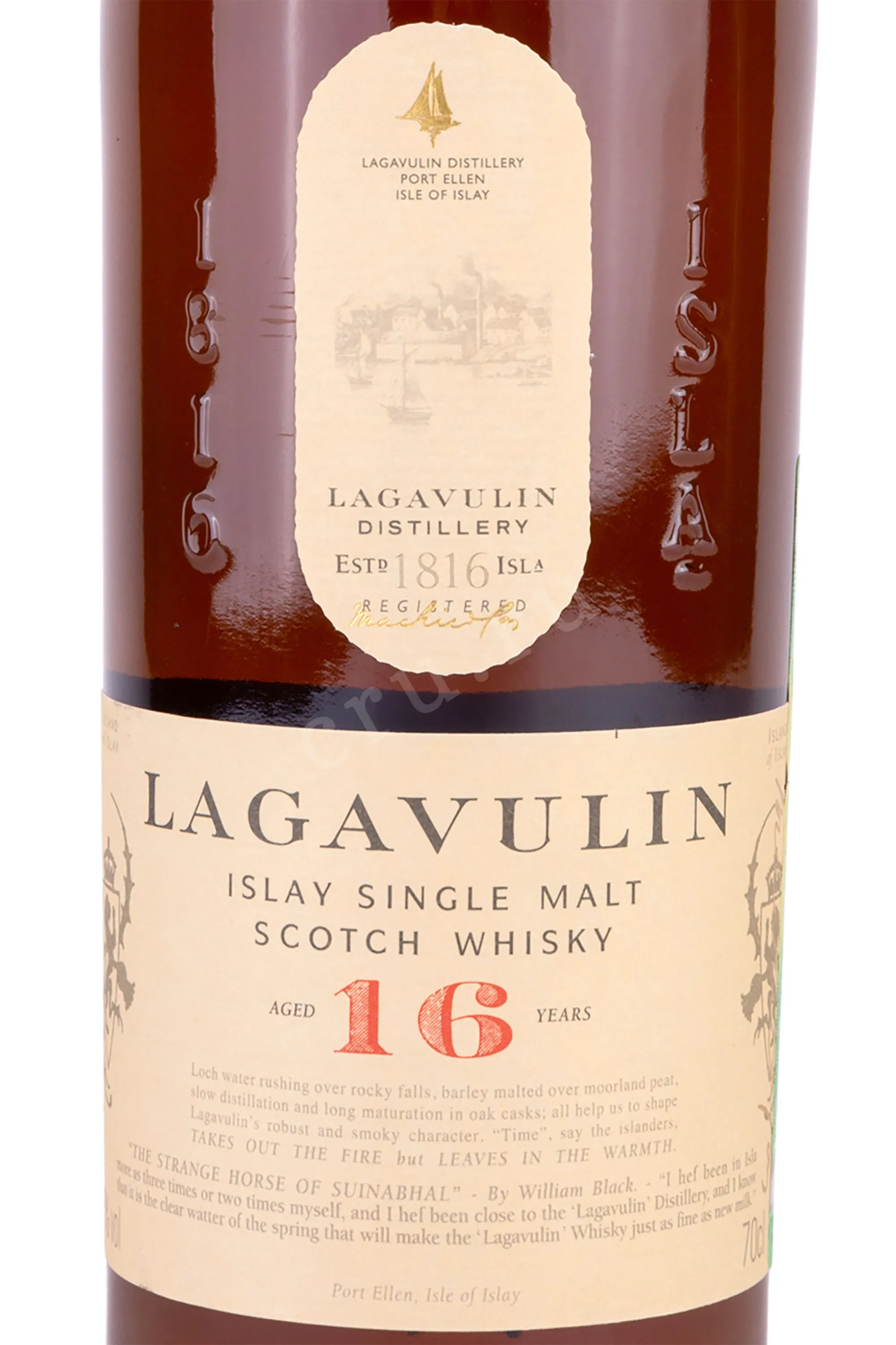 Великолепный виски Lagavulin Single Malt 16 years характеризуется 16 летней выдержкой, специально подобранными сортами ячменя, использованием особых дрожжей и традиционных методов дистилляции. В результате получился виски, который не открывает сразу своих несомненных достоинств. Но после того, как он "подышал" хотя бы несколько минут в бокале, каждый глоток дарит новые изысканность и глубину вкуса. При этом, в 43 градусах крепости нет и намека на спиртуозность. Виски пленит насыщенным цветом и плотными ножками напитка на стекле бокала.