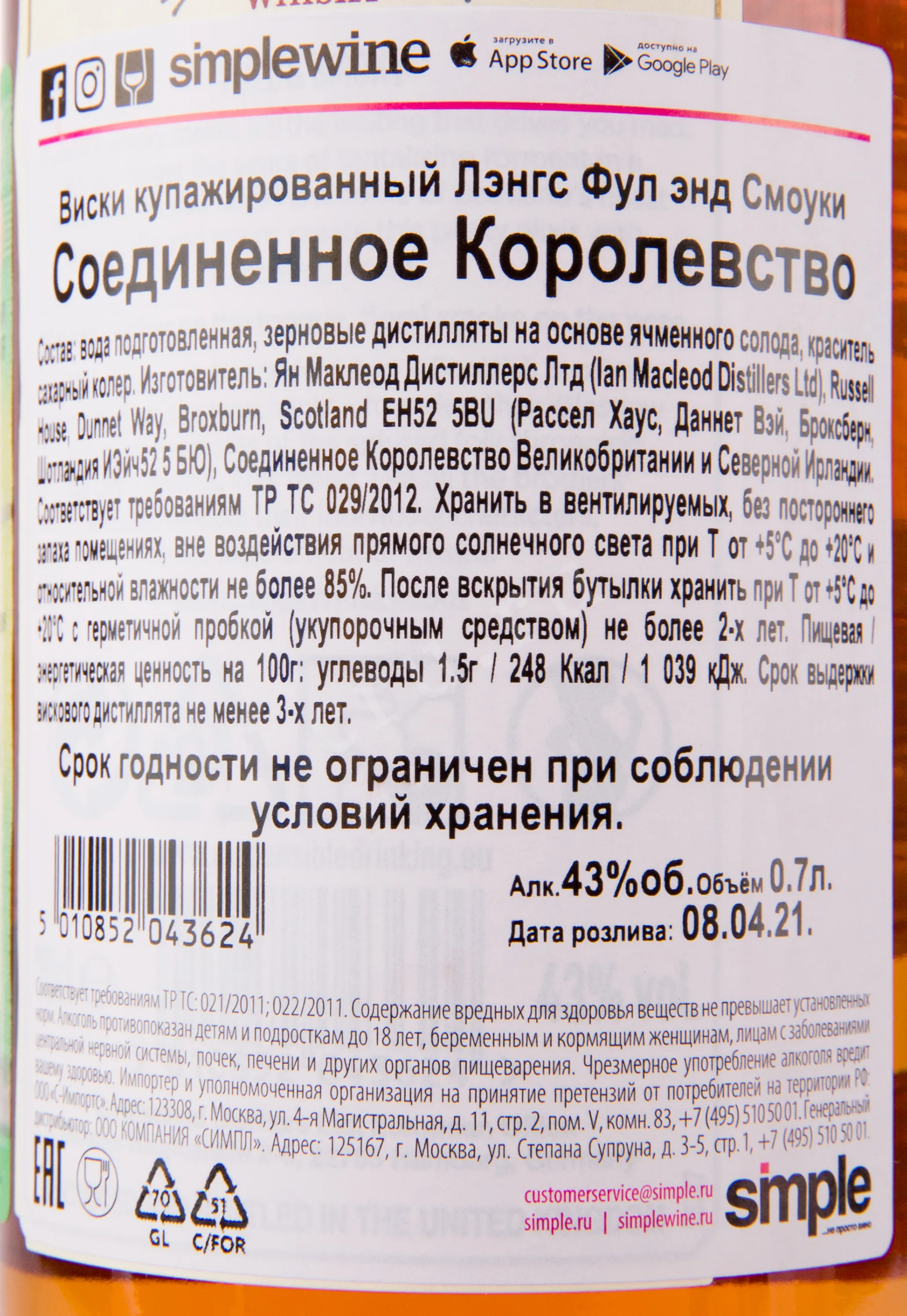 Langs Full Smoky 0.7 л купить - Шотландский виски Лэнгс Фулл энд Смоки цена в магазине