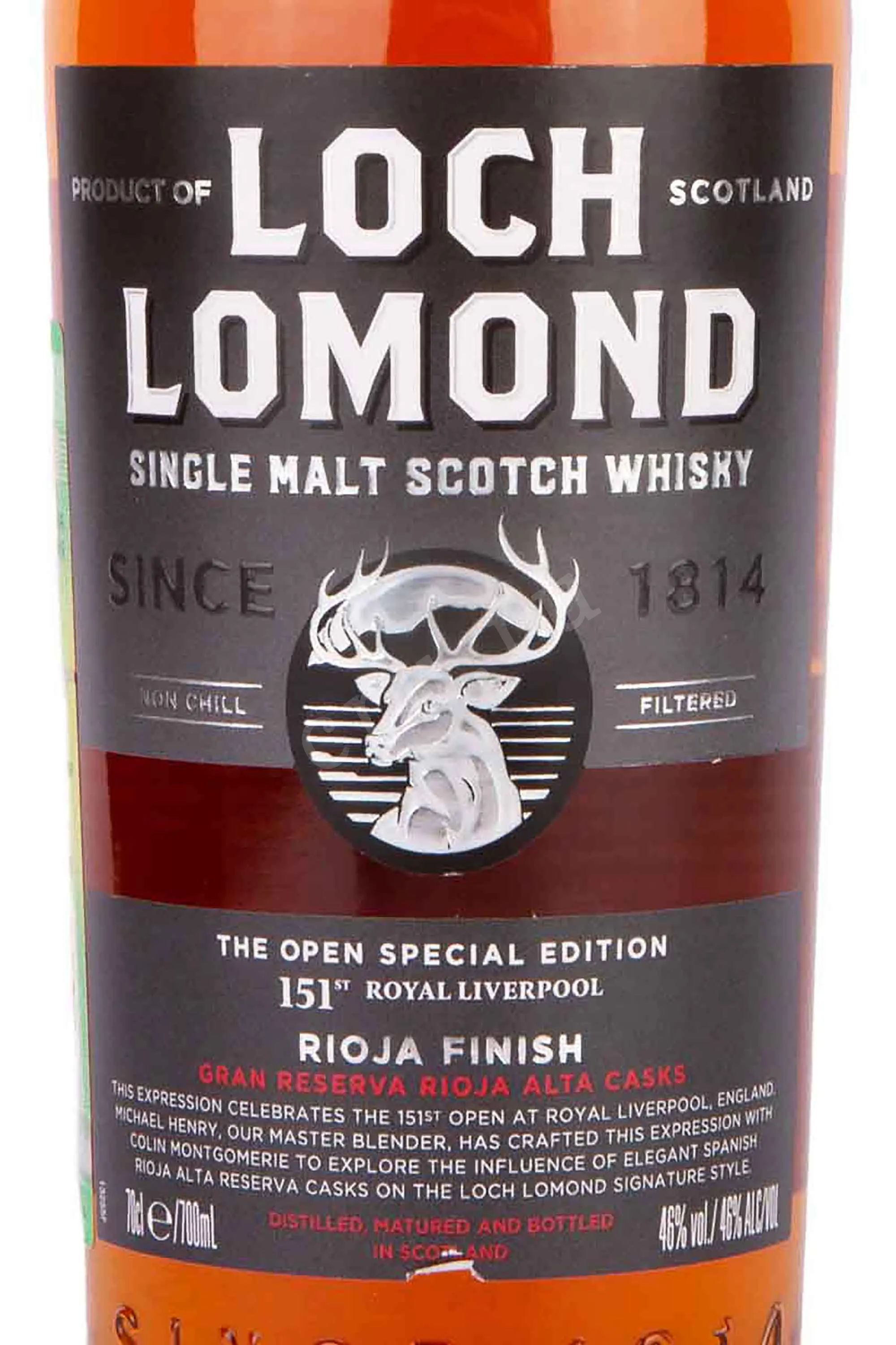 Виски Loch Lomond 151th The Open Special Edition Royal Liverpool Rioja Finish in gift box 0.7 л был создан мастерами шотландской дистиллерии специально к 151-му чемпионату по гольфу The Open, прошедшему в Royal Liverpool. Выдержка этого релиза завершалась в отборных бочках из-под знаменитого испанского вина, что придало напитку исключительную глубину и изысканный характер. Особенностью технологии являлось сочетание традиционного метода двойной дистилляции и дополнительного этапа выдержки, благодаря чему скотч приобрел уникальный профиль с тонкими, выразительными нотами красных фруктов и специй, сохранив классическую солодовость и дымные оттенки.