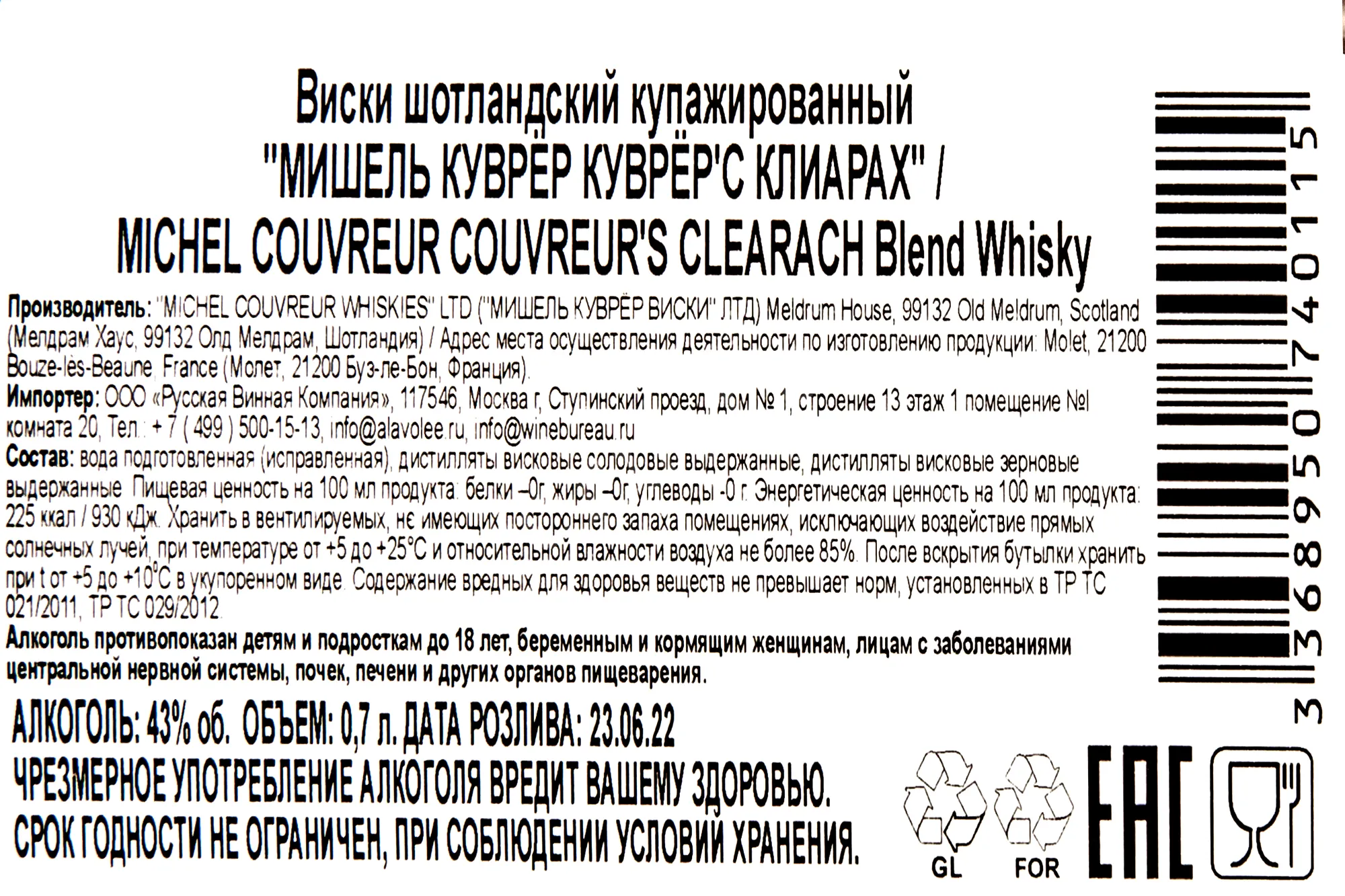 Michel Couvreur Couvreur's Clearach in gift box 0.7 л купить - Шотландский виски Мишель Куврёр Куврёрс Клиарах в подарочной коробке цена в магазине
