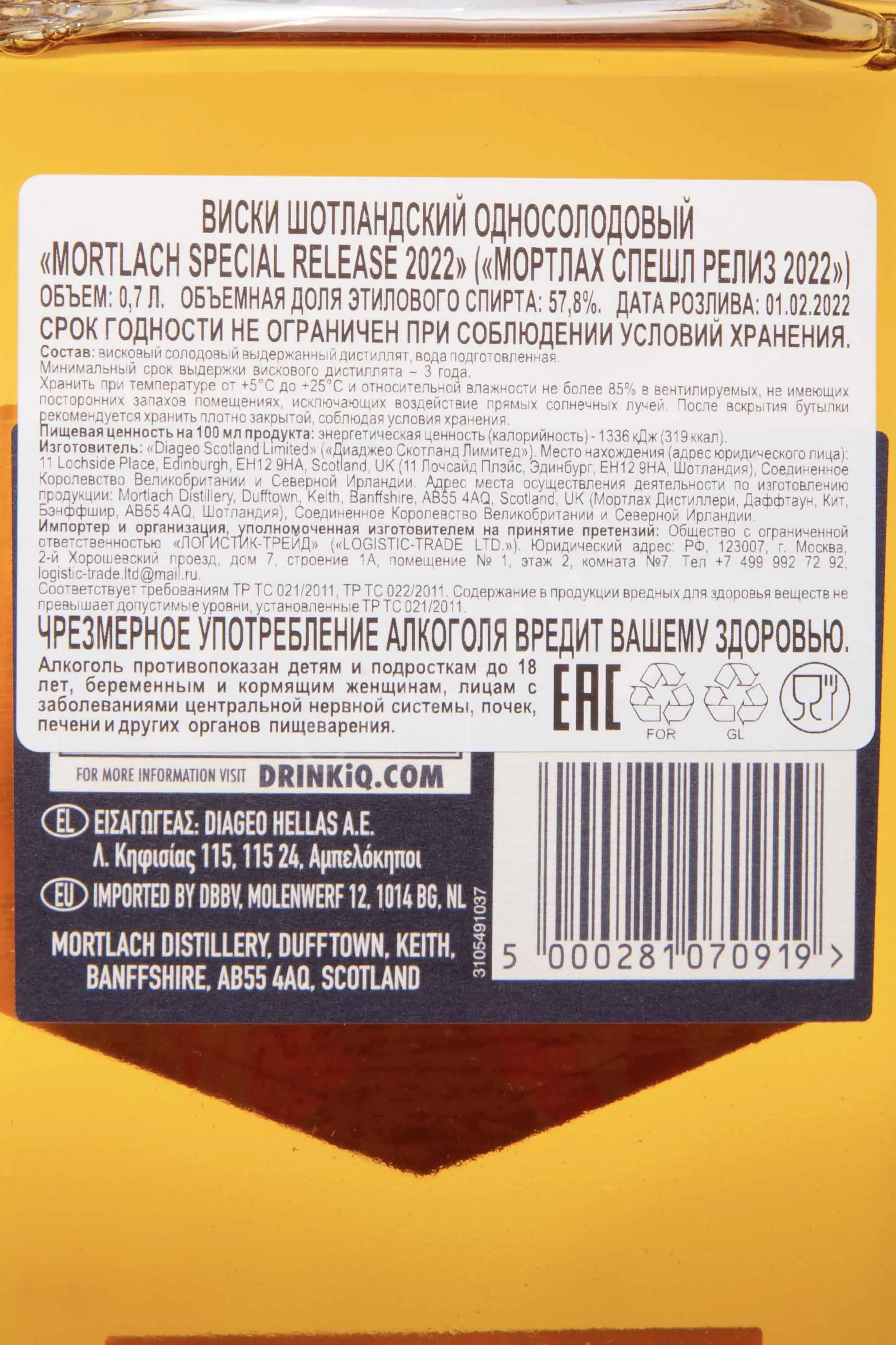 Изготовитель: Diageo Scotland Limited