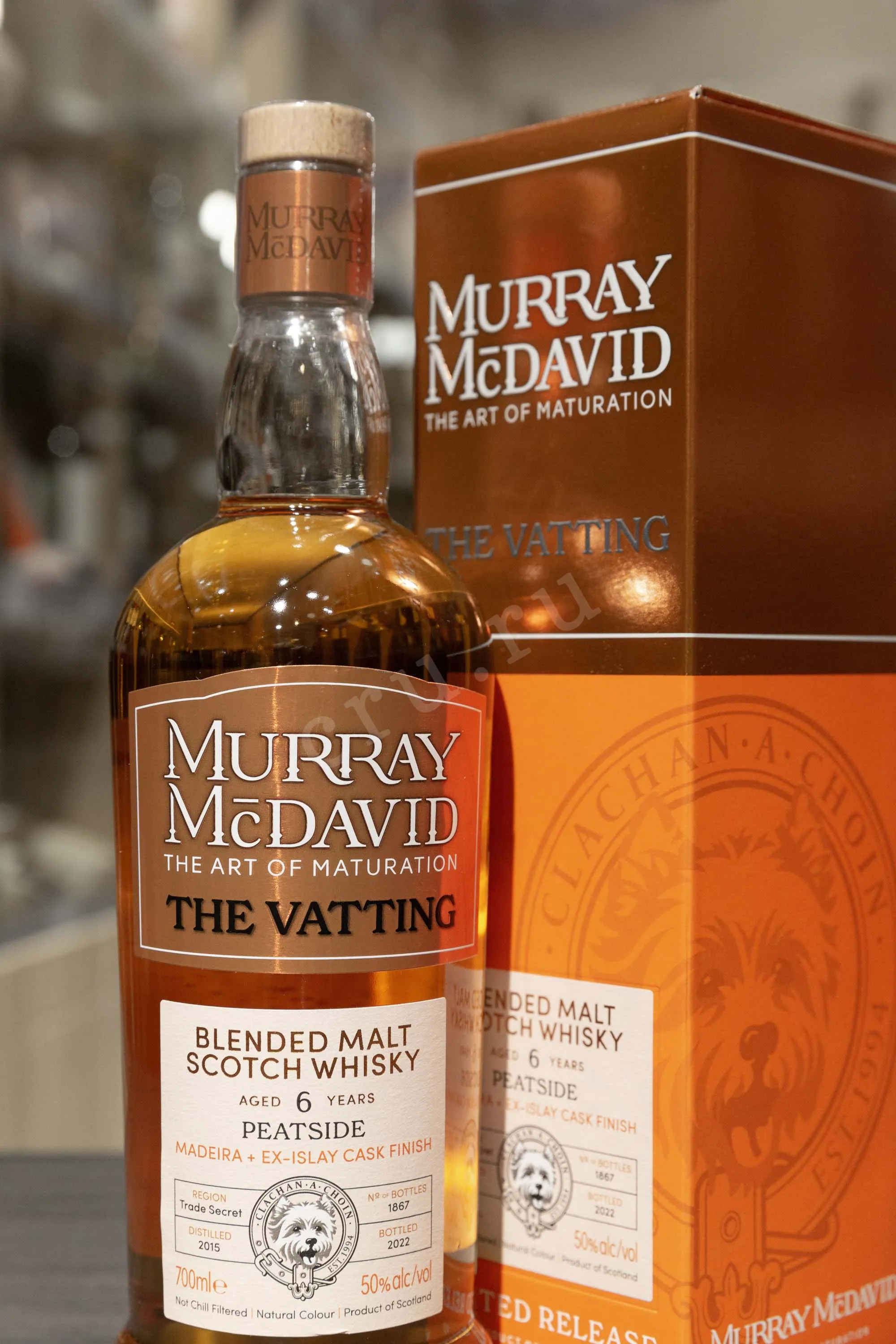 Виски Murray McDavid The Vatting Peatside 6 Years Old gift box 0.7 л был создан из отборного ячменя, высушенного дымом торфяных печей, что придало напитку характерный глубокий торфяной оттенок. Выдержка проходила не менее шести лет в тщательно подобранных дубовых бочках из-под Мадейры и обожженных емкостях, подчеркнувших многослойность вкусовых нюансов и обеспечивших виски гармоничную текстуру. Уникальность технологии заключалась в использовании метода vatting, подразумевающего искусное смешивание выдержанных спиртов из различных регионов Шотландии.