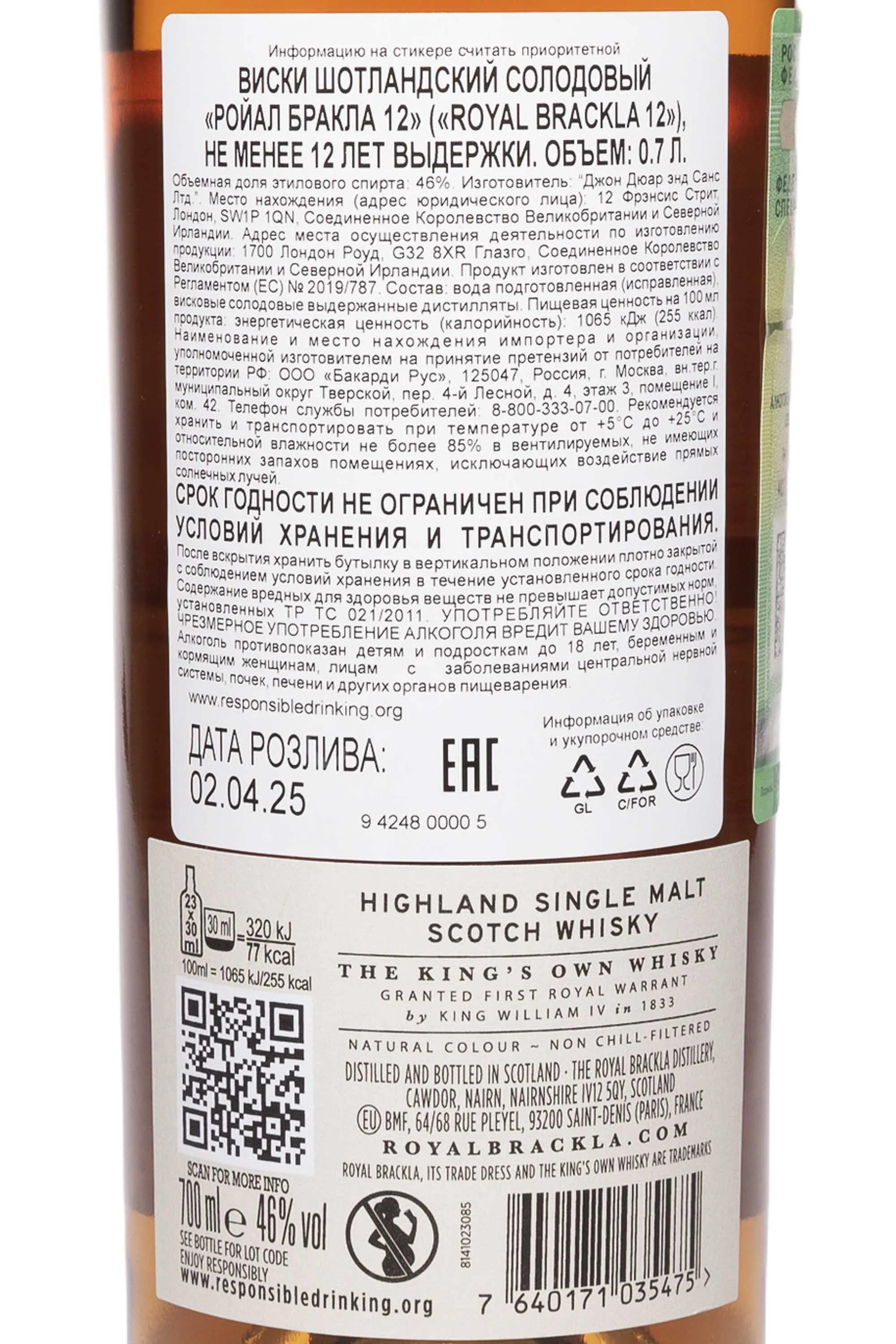 Виски Royal Brackla 12 лет Sherry Cask 0,7 л — это шотландский сингл молт из региона Хайленд, известный своей мягкой и насыщенной структурой. Напиток создан дистиллерией Роял Бракла, одной из первых получивших королевский статус ещё в XIX веке. После двенадцати лет выдержки в бочках из-под бурбона виски дополнительно проходит финиш в хересных бочках Oloroso, что придаёт ему глубокие тона сухофруктов и специй. Производство ведётся с использованием ячменя высшего качества и мягкой родниковой воды из окрестностей Кадора. Ручной подход к отбору бочек обеспечивает стабильность вкуса и аромата. Этот релиз ценится за сбалансированное сочетание сладости и дубовых оттенков и входит в линейку The King's Own, отмеченную наградами на международных конкурсах за выразительность и гармонию вкуса.