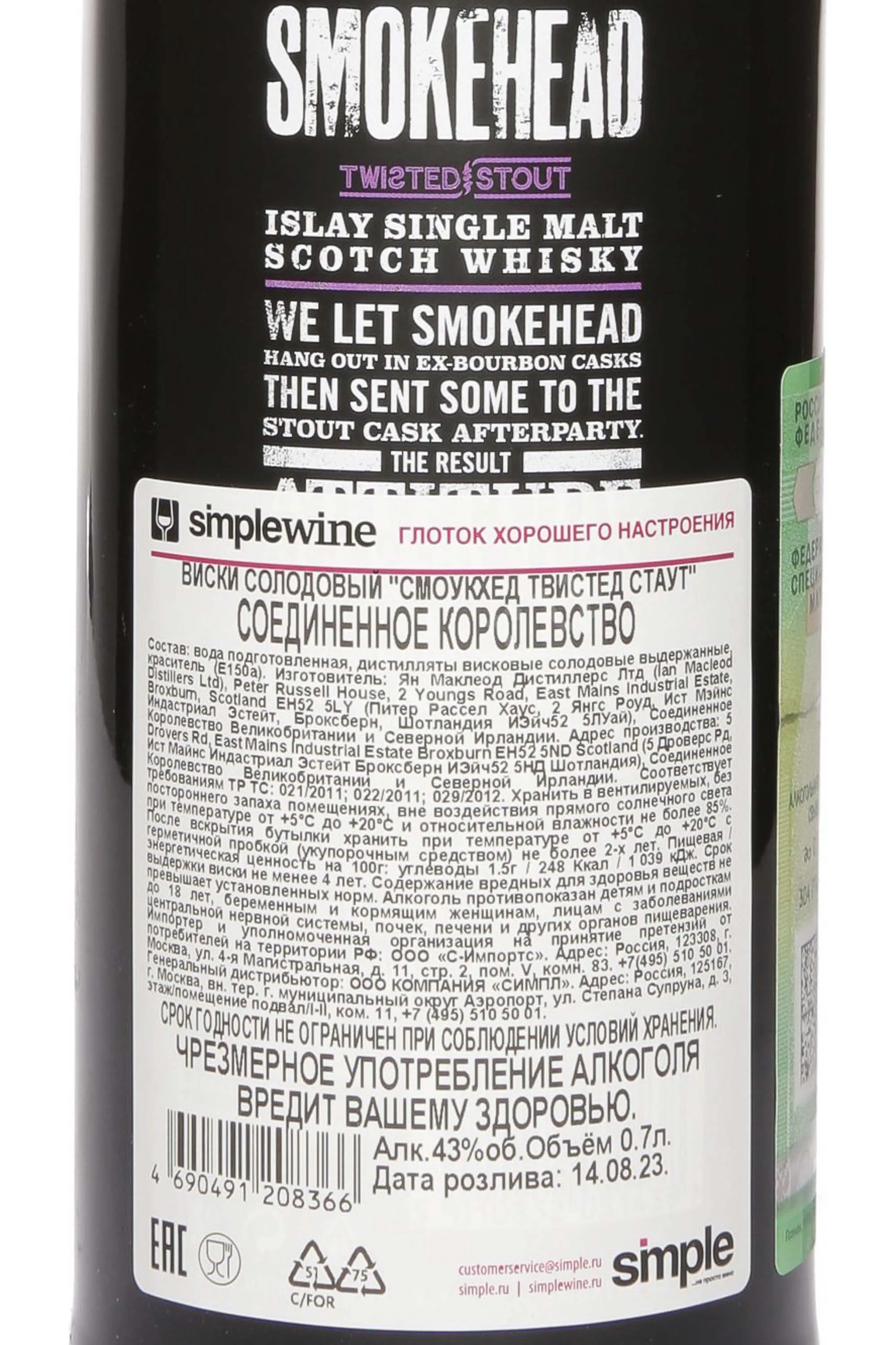 Виски Smokehead Twisted Stout 0,7 л в подарочной упаковке — это необычный эксперимент в линейке односолодовых релизов с острова Айла. Напиток, в котором традиционная торфяная основа получает новое измерение, выдерживался в дубовых бочках из-под бурбона, а затем доводился в емкостях, где прежде находился стаут. Такая комбинация подарила скотчу плотную текстуру и сложный вкусовой рисунок: к йодистой солености и дымным акцентам добавились кофейные тона, сладковатые нюансы темного шоколада и мягкая зерновая глубина. Регион, где производится этот образец, известен суровым климатом и влажными атлантическими ветрами, формирующими характерные свойства местных спиртов.
