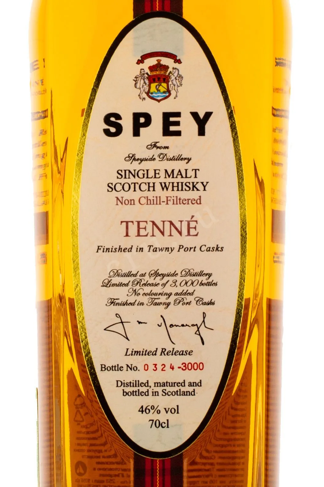 Виски Spey Tenne in tube 0.7 l – это односолодовый скотч из Шотландии, представленный в сувенирной тубе. 46-процентный напиток создается методом двойной перегонки с последующим созреванием спиртов сначала в дубовых тарах из-под бурбона в течение 8 лет, а после еще не менее полугода в барриках из-под портвейна. Виски был выпущен ограниченным тиражом (всего 18 тысяч бутылок), а каждый сосуд имеет свой индивидуальный номер. Алкоголь был отмечен серебряной и золотой медалями на дегустационных конкурсах в Лондоне и Нью-Йорке.