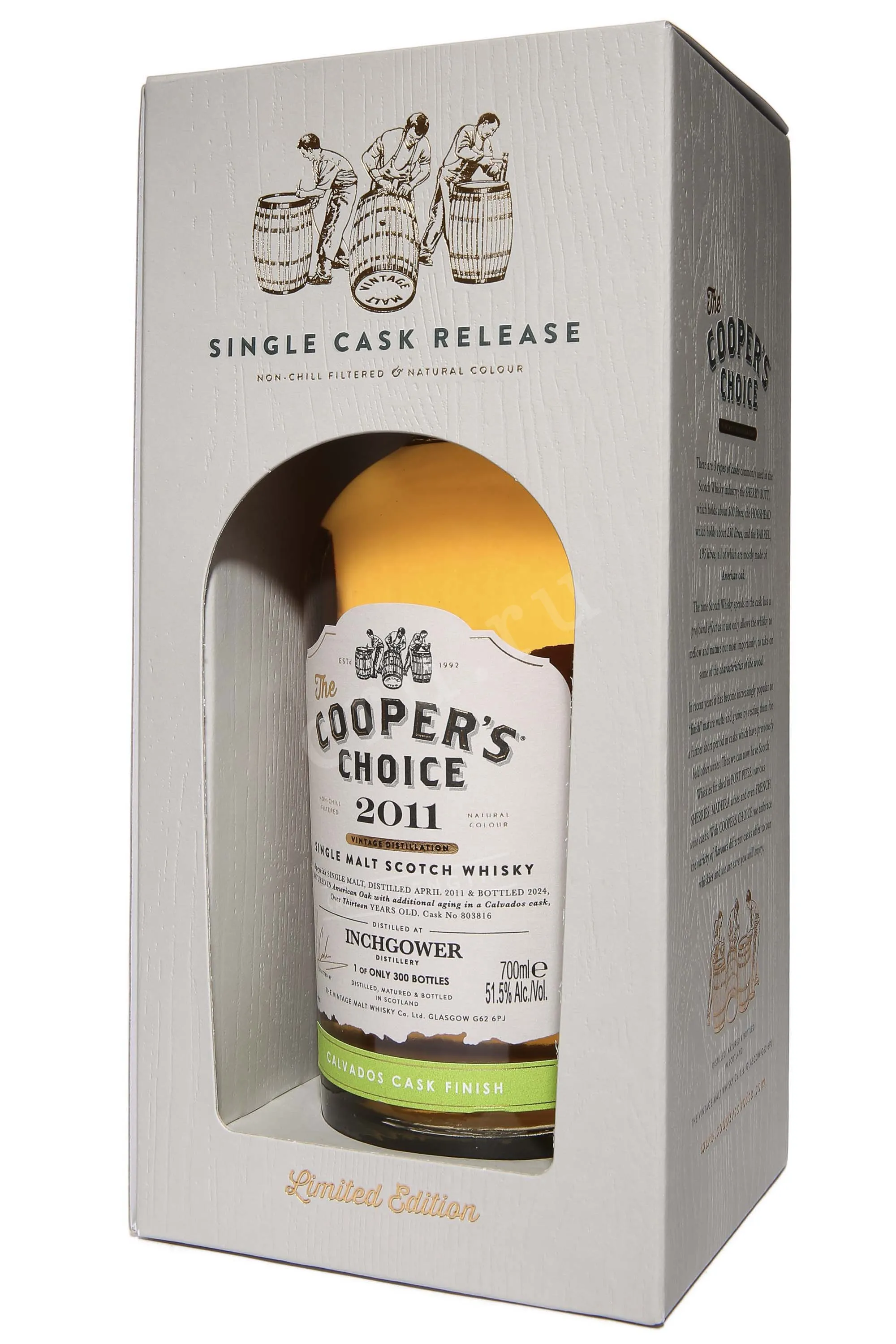 Виски The Cooper's Choice Inchgower Calvados Cask Finish 0,7 л в подарочной упаковке создан в традициях независимого бутилирования. Этот релиз представляет собой редкую возможность познакомиться со стилем шотландской дистиллерии Инчговер в необычной интерпретации. Сначала сингл молт выдерживался в классических дубовых бочках, а затем проходил дополнительную финишную выдержку в бочках из-под кальвадоса. Такое сочетание придало ему особую фруктовую глубину и мягкие яблочные оттенки. Серия Зе Куперс Чойс известна своими коллекционными релизами, каждый из которых по-своему уникален. В данном случае индивидуальность характера выражается в сочетании северо-шотландского стиля и французского наследия, что отмечают коллекционеры и ценители редких выпусков.