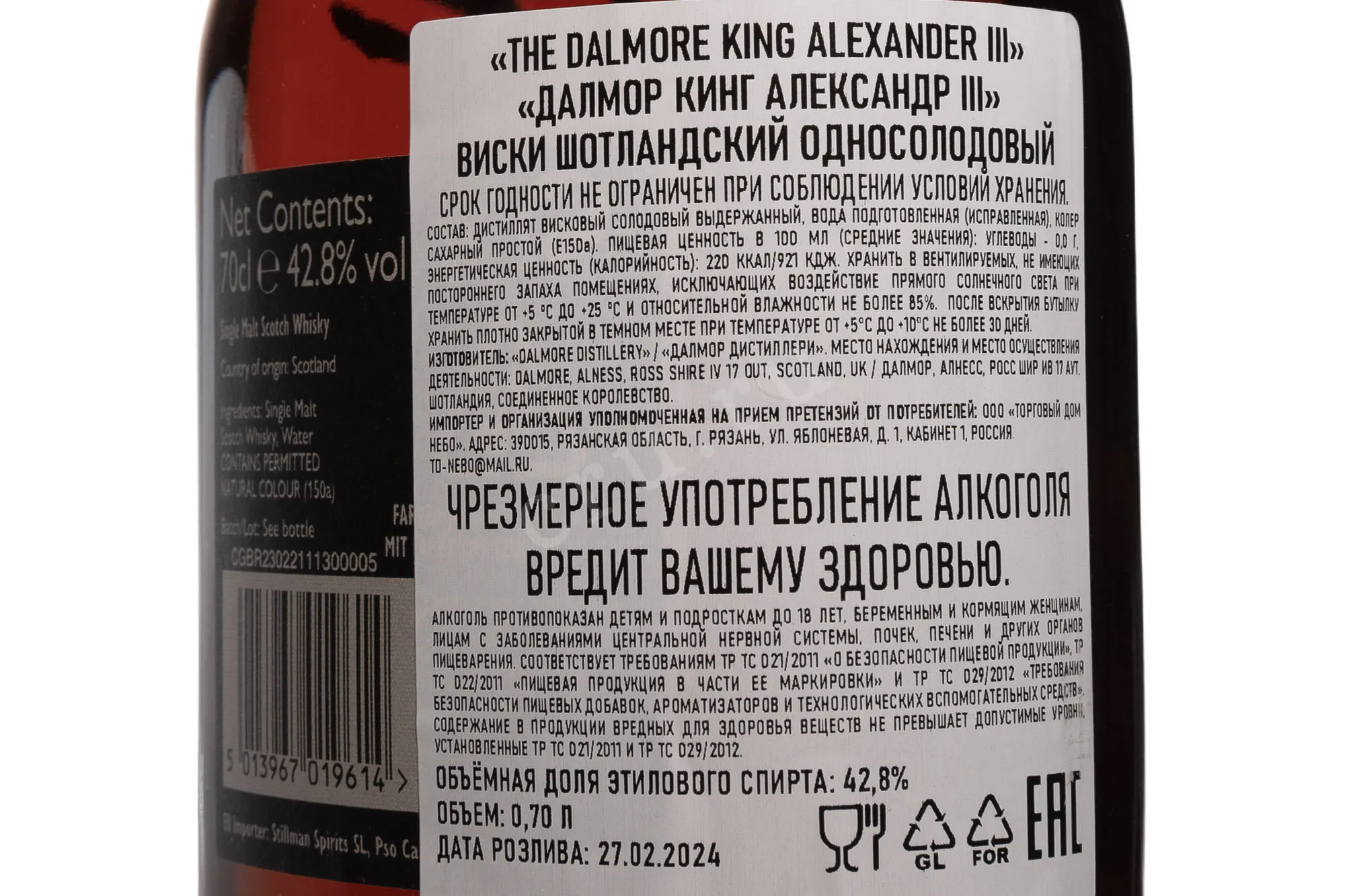The Dalmore King Alexander III in gift box 0.7 л — это выдающийся односолодовый шотландский виски премиального класса, созданный в честь короля Александра III и легендарного оленя с двенадцатью отростками, ставшего символом дистиллерии. Уникальность релиза заключается в выдержке сразу в шести типах бочек, включая бочки из-под бурбона, хереса, портвейна, мадеры, марсалы и каберне совиньон, что формирует исключительную глубину и сложность вкуса. Виски отличается богатым, многослойным характером и безупречным балансом. Подарочная упаковка подчёркивает статус напитка и делает его идеальным выбором для коллекционеров и особых случаев.