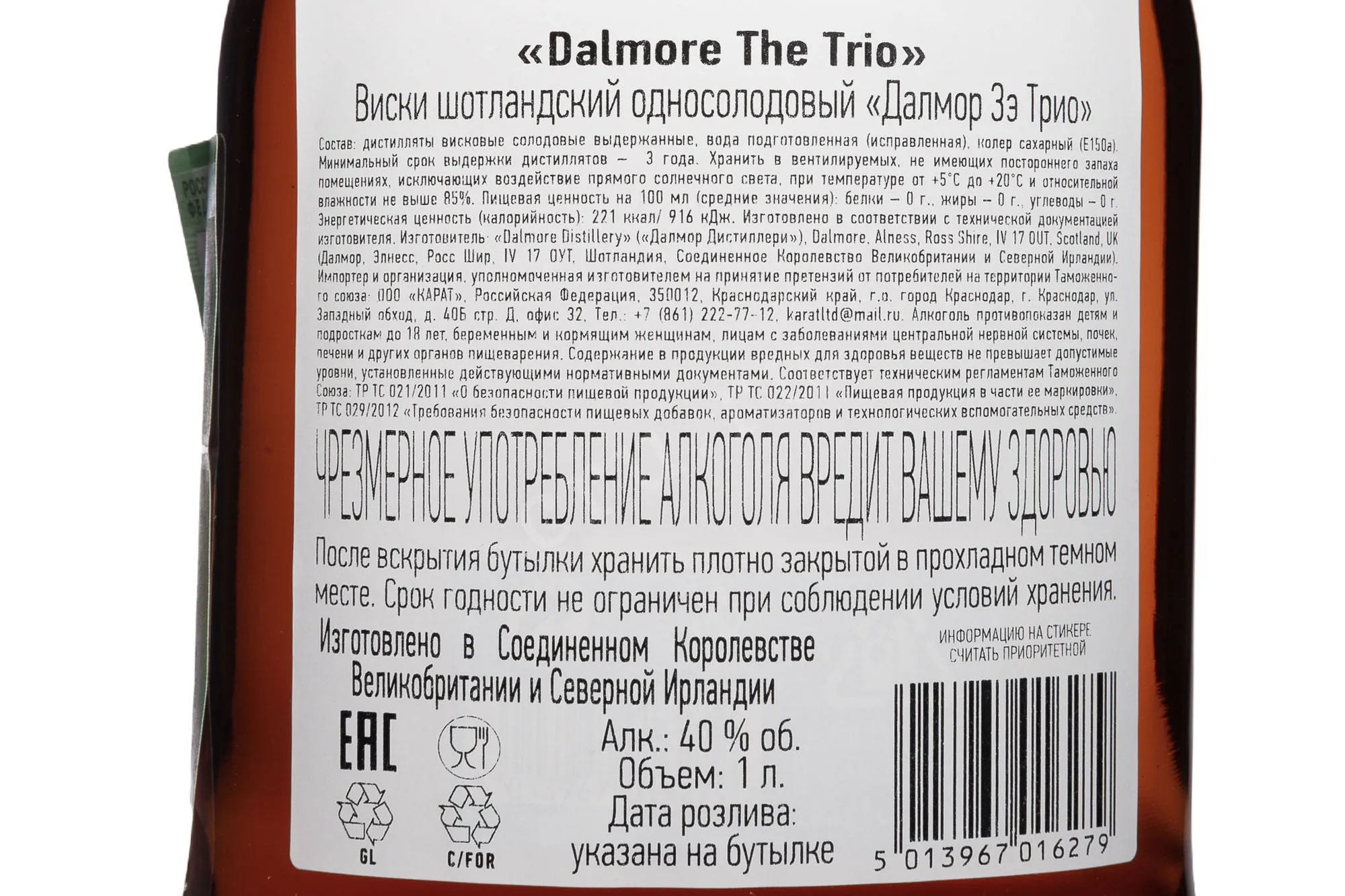 Виски The Dalmore The Trio Three Cask Finishes в подарочной упаковке 1 л представляет собой выражение фирменного стиля бренда, основанного на многослойной выдержке и акценте на хересных бочках. Напиток создаётся по схеме, в которой спирты сначала выдерживаются в бочках из-под бурбона из американского белого дуба, после чего распределяются между тремя типами емкостей: бурбоном первой заливки, бочками из-под десятилетнего портвейна Tawny и редкими хересными бочками возрастом около тридцати лет. Затем партии снова объединяются. Такой подход формирует объёмный профиль, где сладость и ореховые оттенки хереса сочетаются с пряностями и карамельными нюансами. Виски демонстрирует сразу несколько граней характера и заметно выделяется среди релизов серии благодаря глубине и балансу. Его чаще отмечают за сложность вкуса, а критики подчеркивают гармоничное раскрытие трёх стилей выдержки в одной бутылке.