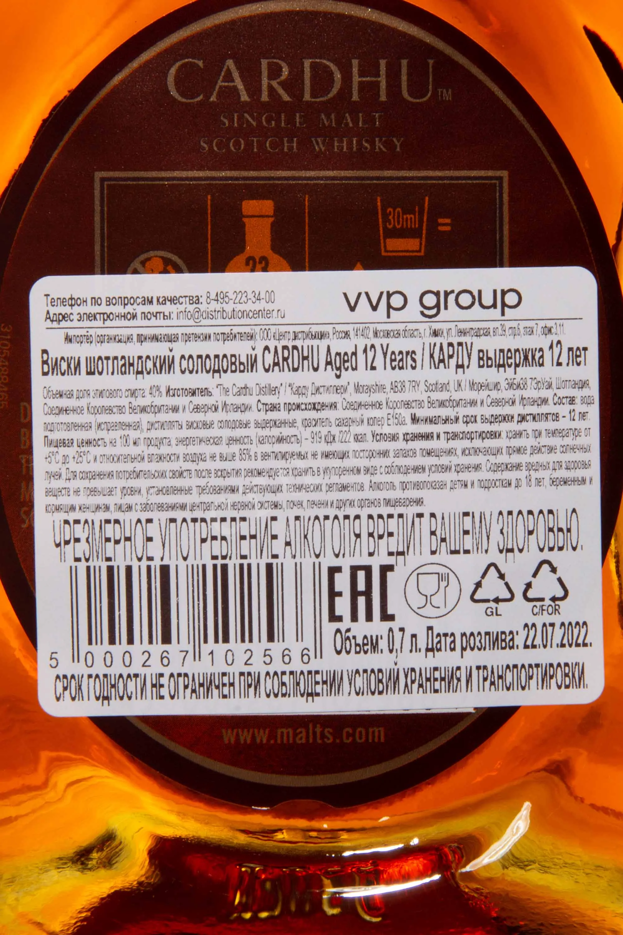 Виски Cardhu 12 лет Single Malt 0,7 л в подарочной упаковке с 2 бокалами создан на холмах Спейсайда, где мягкий климат и чистая родниковая вода определили характер дистиллята. Производство велось на одной из старейших локальных винокурен региона, известной лёгким стилем и вниманием к деталям. Ячмень сушили при невысоких температурах, дистилляция проходила в медных перегонных кубах, формирующих округлый, мягкий спирт. Выдержка длилась не менее двенадцати лет в бочках из-под бурбона. Подарочный набор с двумя бокалами подчёркивает традицию неторопливой дегустации и возможность оценить богатый стиль напитка в полном объёме.