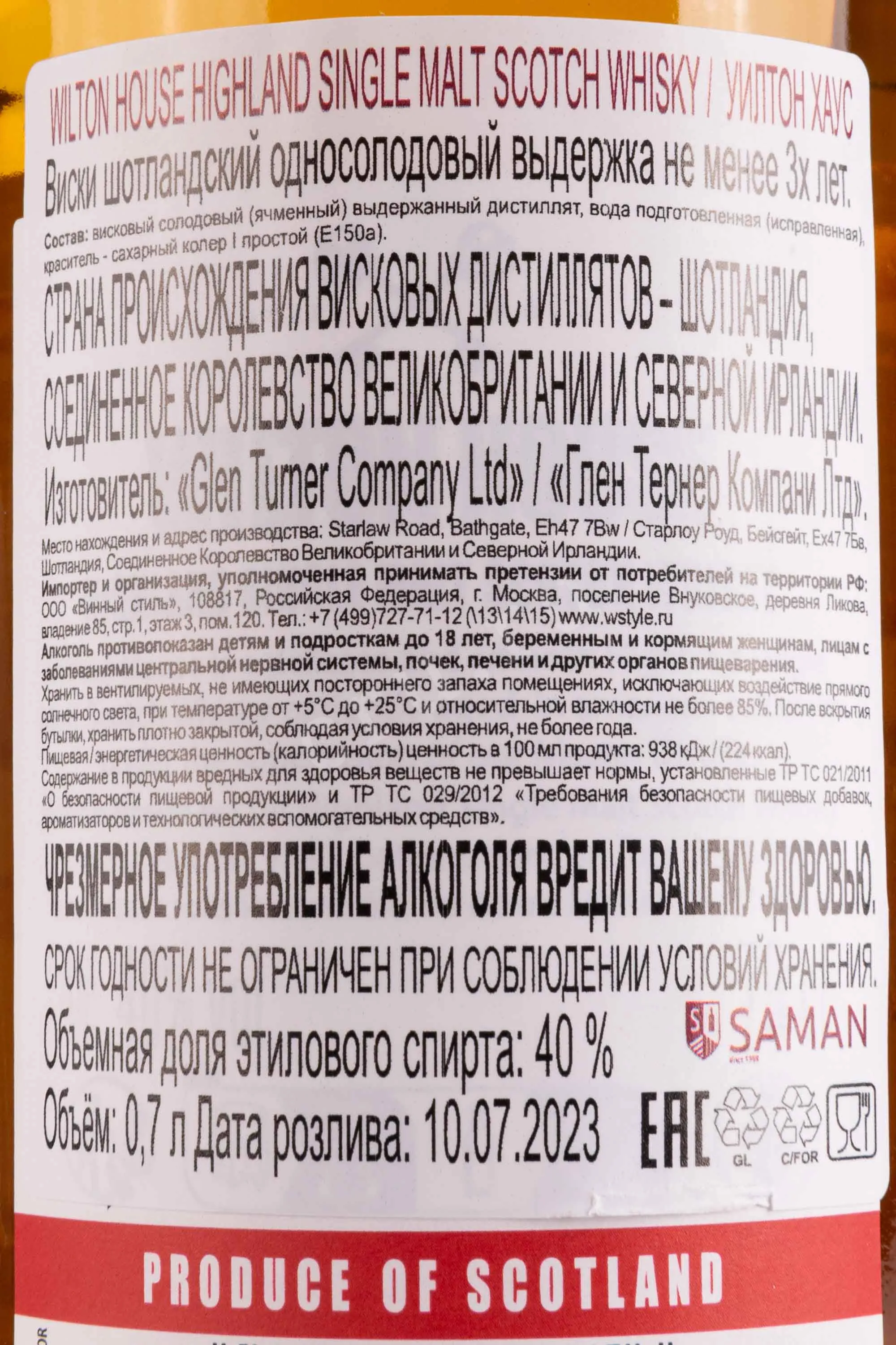Wilton House 3 years old in tube 0.7 л купить - Шотландский виски Уилтон Хаус 3 года в тубе цена в магазине г. Москва, ул. Профсоюзная, д. 16/10 10:00-22:00 Ежедневно +7 (495) 920-20-02 info@cru.ru