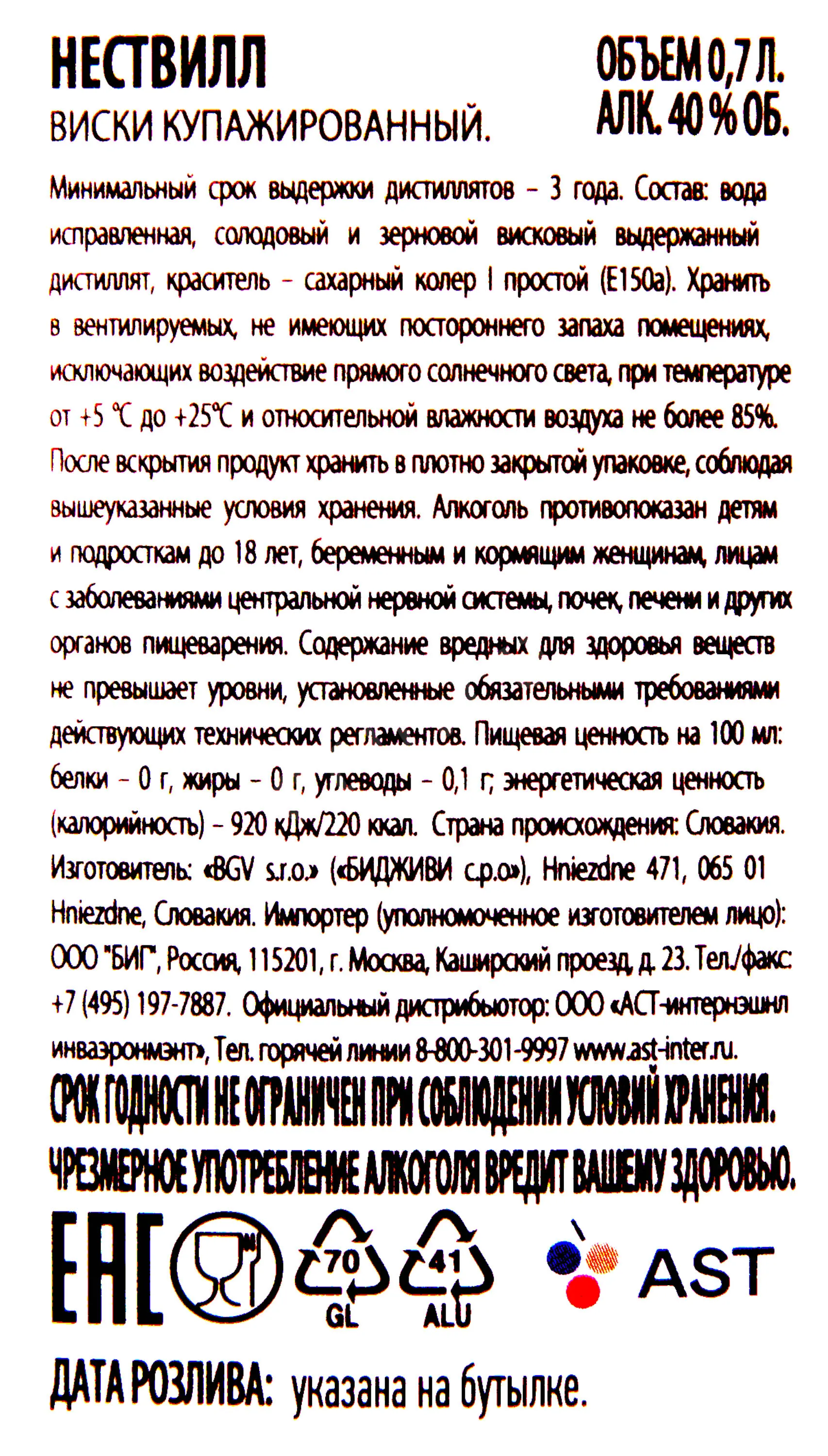 Nestville 7 times distilled 0.7 л купить - Словацкий виски Нествилл 7 раз дистиллированный цена в магазине
