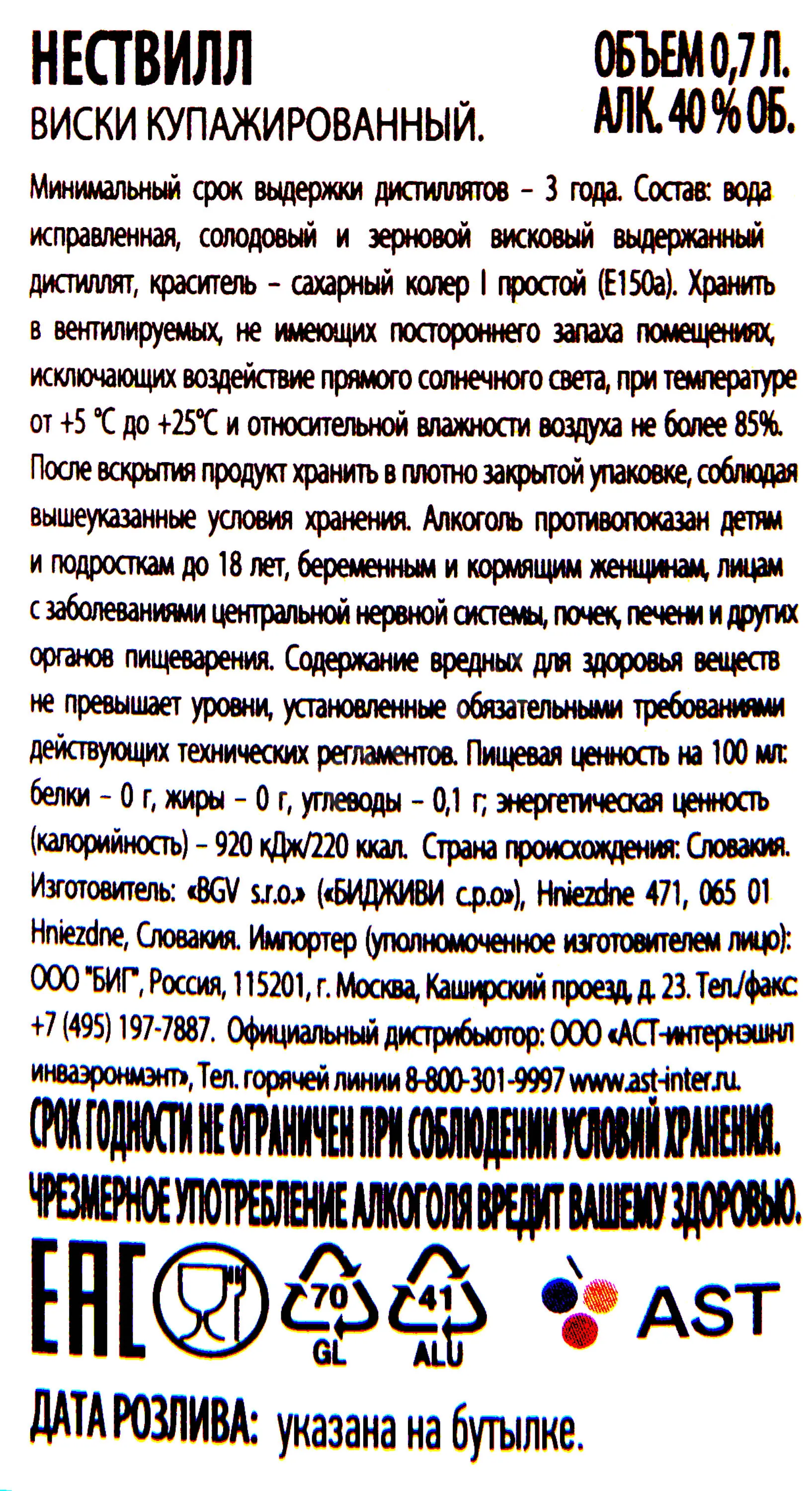 Nestville 7 times distilled with gift box 0.7 л купить - Словацкий виски Нествилл 7 раз дистиллированный в подарочной коробке цена в магазине