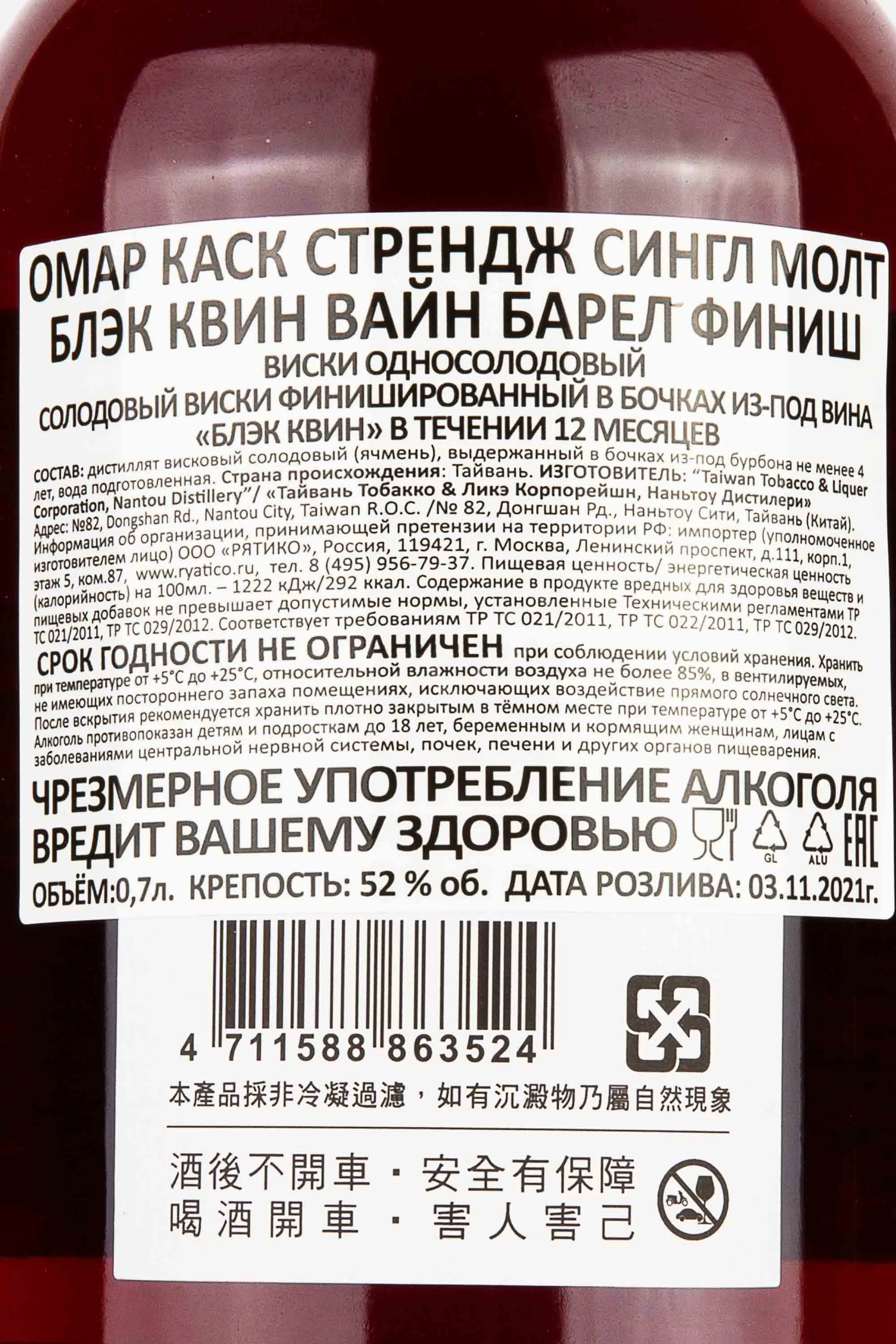 Omar Cask Strength Single Malt Black Queen Wine Barrel Finished in gift box 0.7 л купить - Тайваньский виски Омар Каск Стрендж Сингл Молт Блэк Квин Вайн Барел Финиш в подарочной упаковке цена в магазинег. Москва, ул. Профсоюзная, д. 16/1010:00-22:00 Ежедневно+7 (495) 920-20-02info@cru.ru