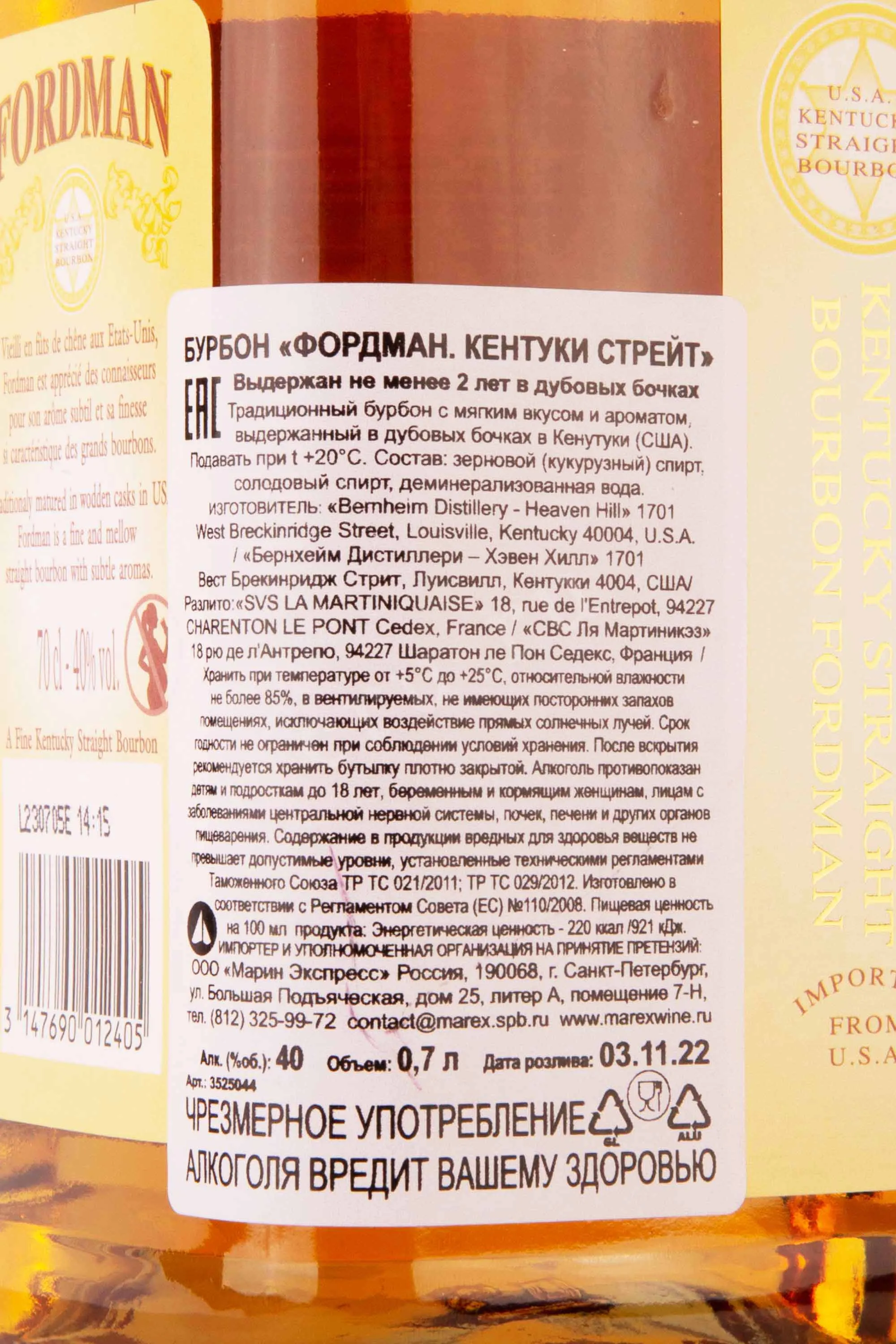 Fordman Kentucky Straight 0.7 л купить - Американский виски Фордман Кентуки Стрейт цена в магазине г. Москва, ул. Профсоюзная, д. 16/10 10:00-22:00 Ежедневно +7 (495) 920-20-02 info@cru.ru