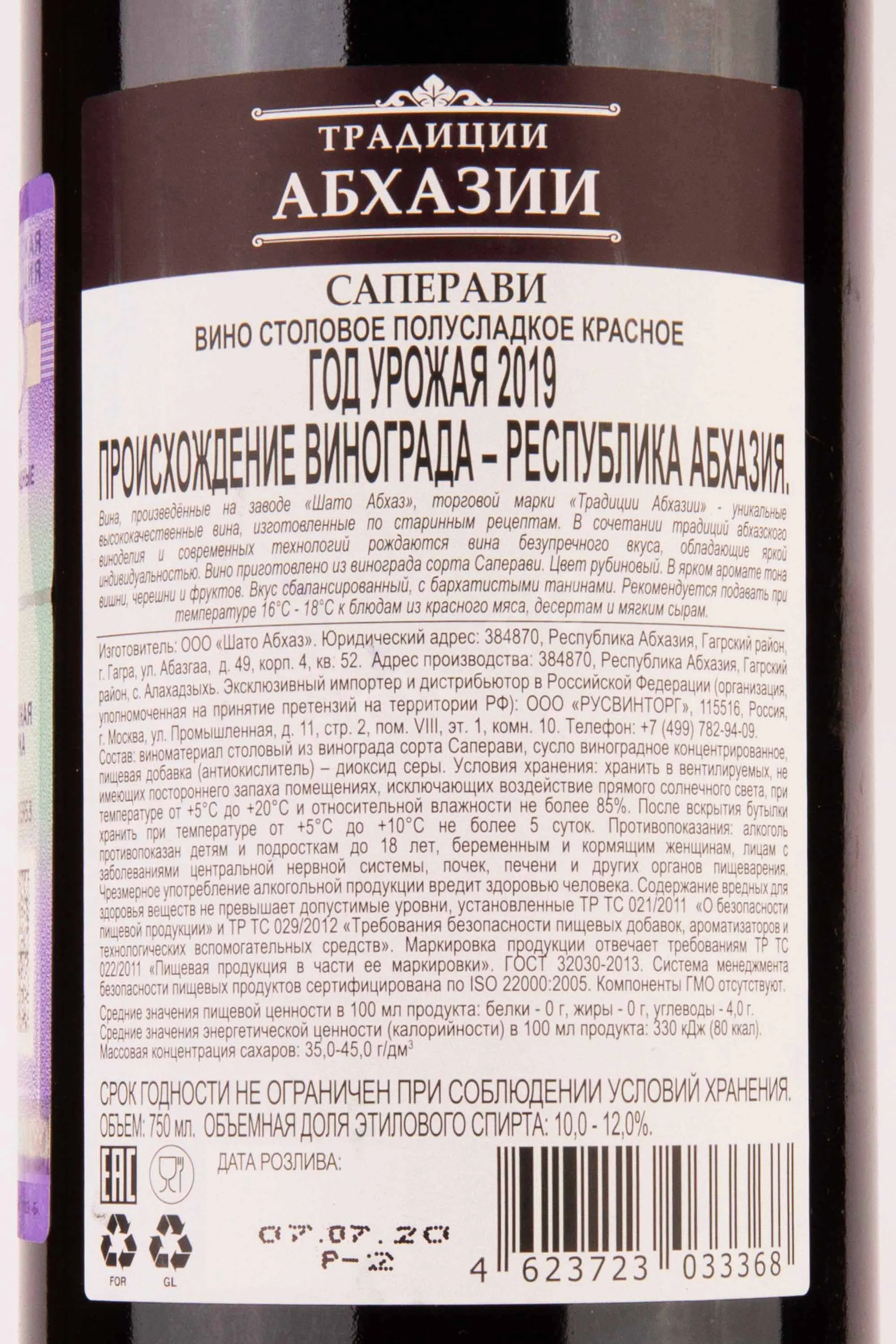 Изготовитель: ООО "Шато Абхаз"