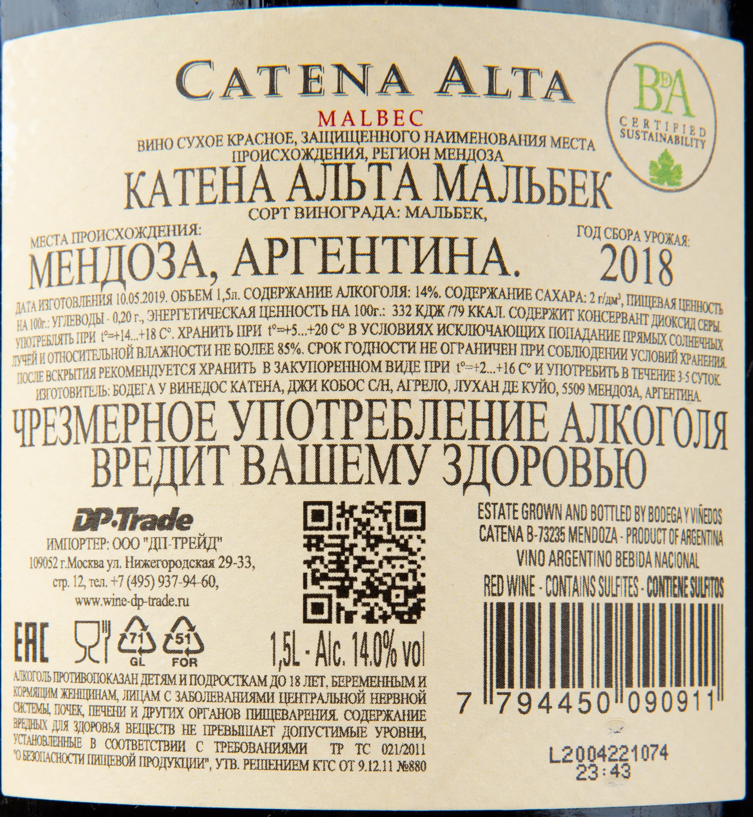 Catena Alta Malbec 2018 1.5 л купить — Аргентинское вино Катена Альта Мальбек цена в магазине г. Москва, ул. Профсоюзная, д. 16/10 10:00-22:00 Ежедневно +7 (495) 920-20-02 info@cru.ru