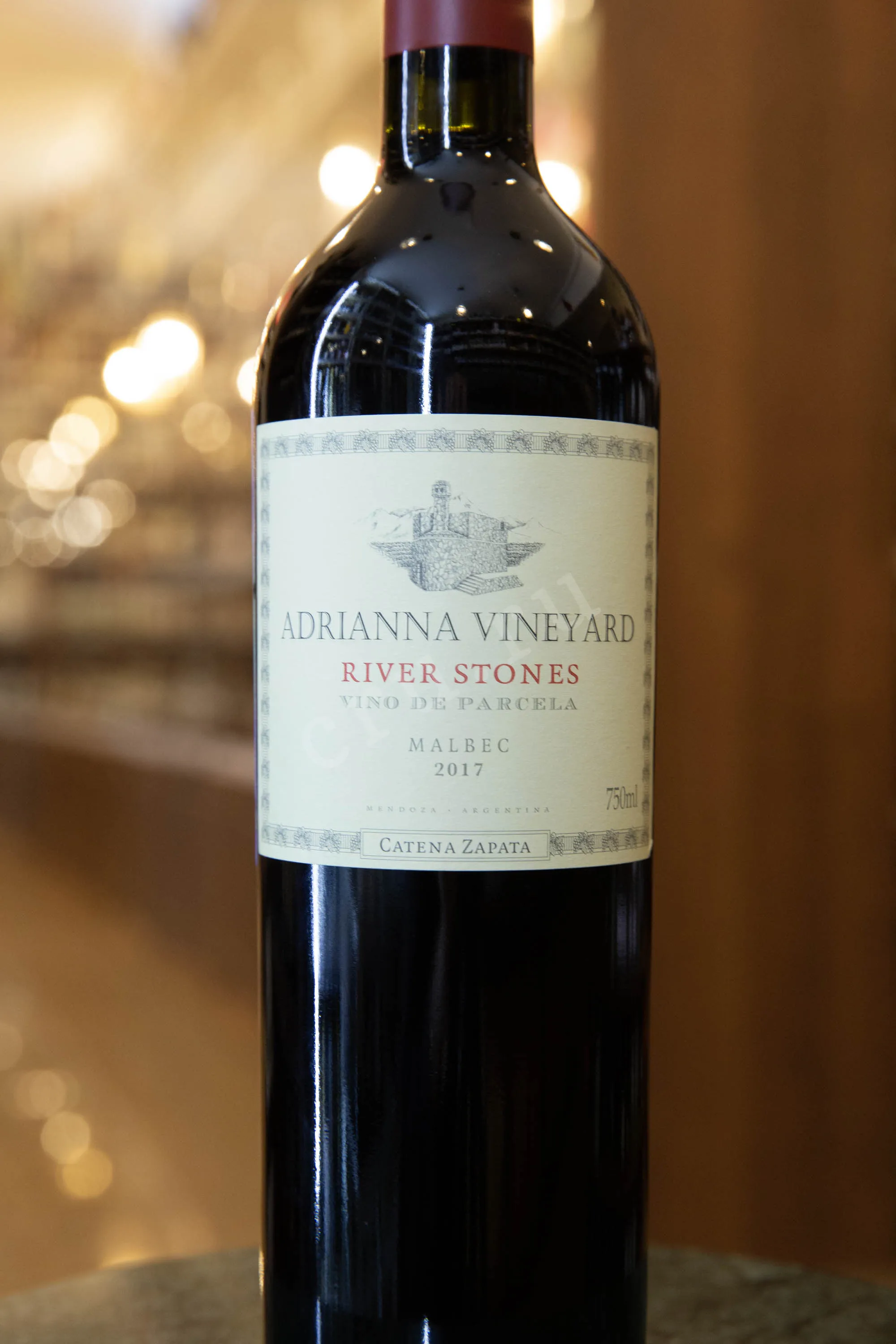 Красное сухое вино Catena Zapata River Stones Adrianna Vineyard 2017 года 0,75 л производится из винограда сорта Мальбек, выращенного на участке Ривер Стоунс виноградника Адрианна в регионе Уко Вэлли. Этот терруар расположенный на высоте более 1300 м, характеризуется почвами аллювиального происхождения, покрытыми белыми овальными камнями, что обеспечивает оптимальный дренаж и значительные суточные колебания температур. Виноград собирается вручную, после чего ферментация проводится в 225-литровых дубовых бочках и 500-литровых французских дубовых роллерных ферментерах (17 дней при температуре 25–30 °C) с последующей мацерацией (в течение 10–15 дней). Выдержка вина во французском дубе длится 20 месяцев.