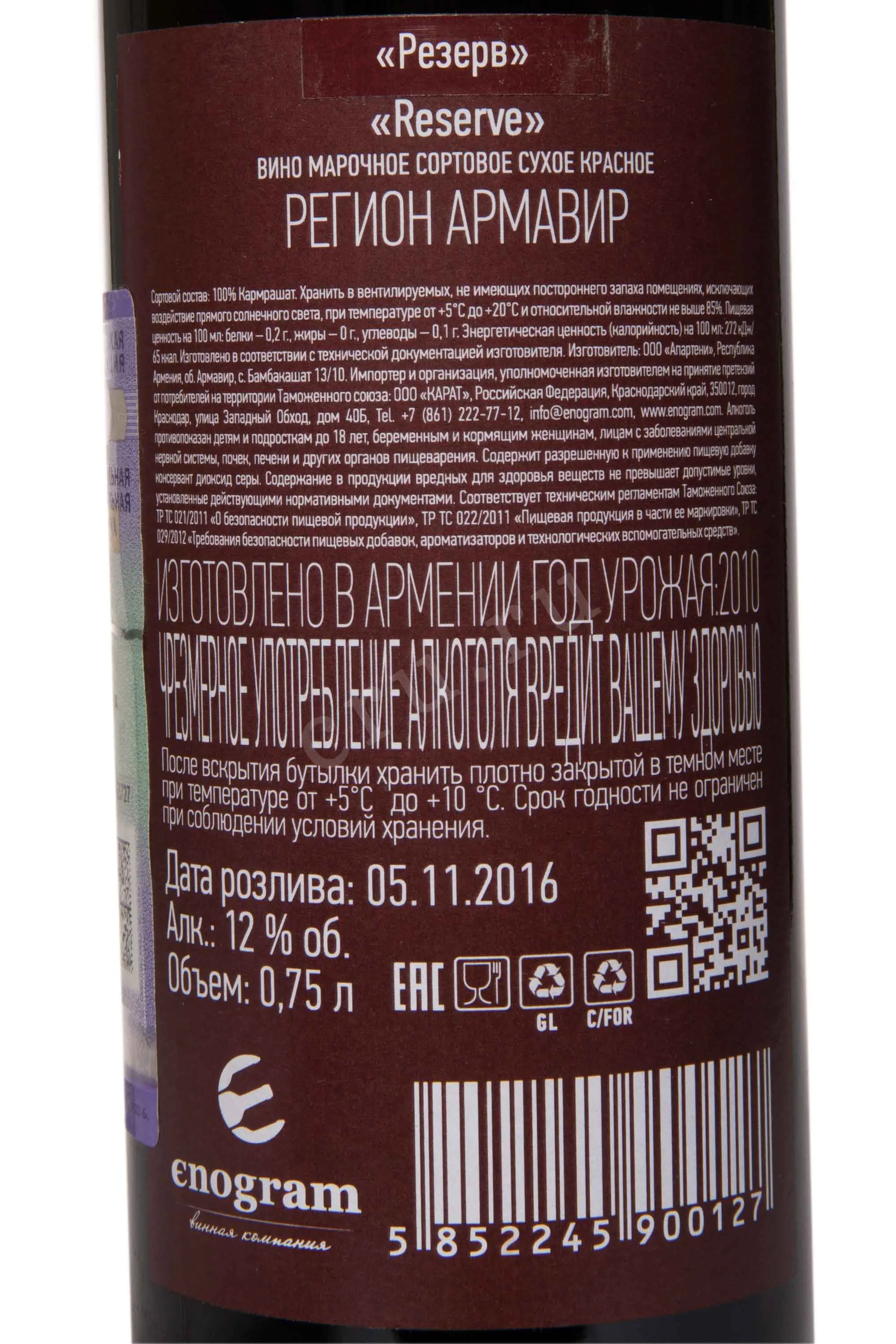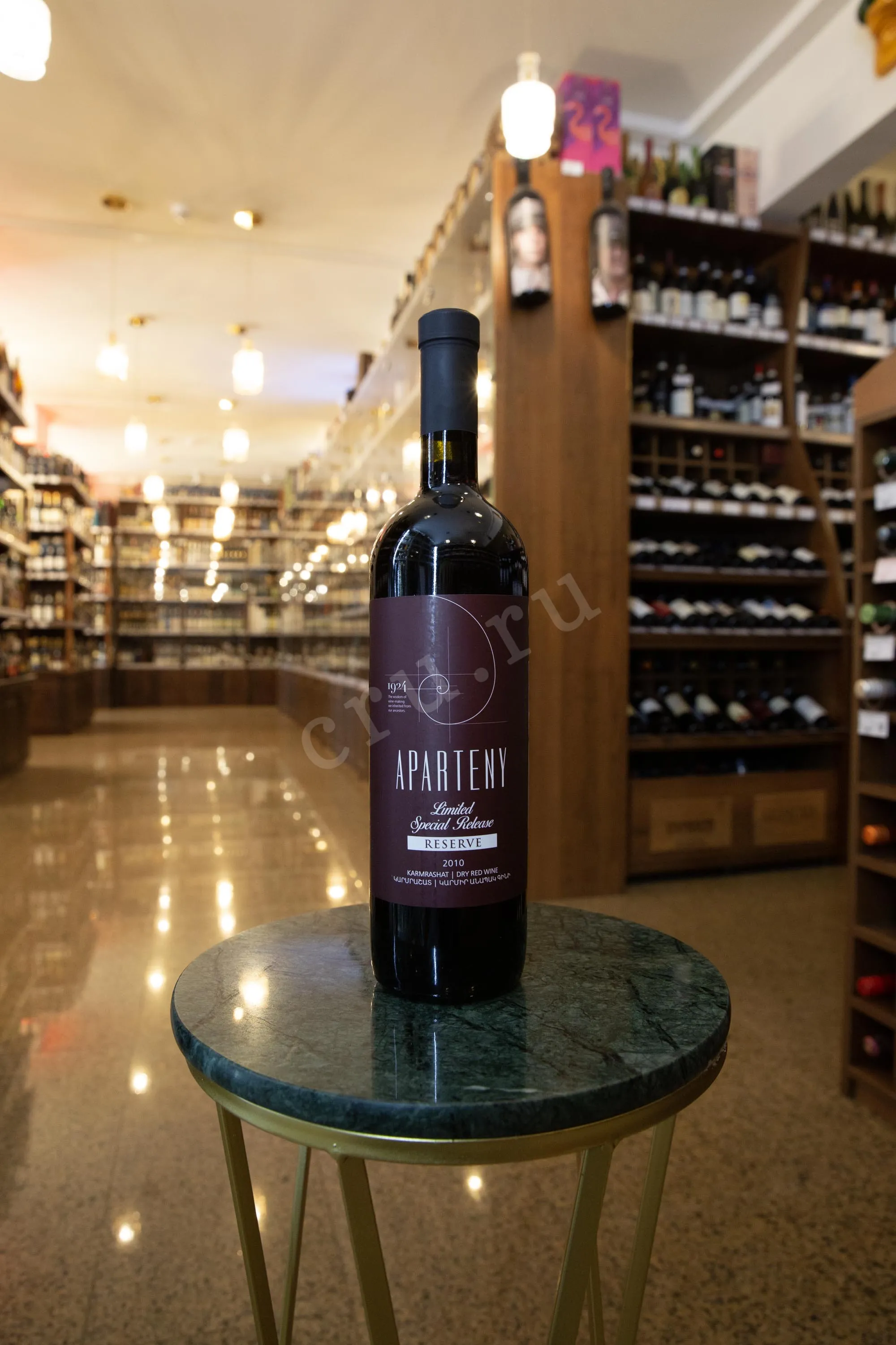 Красное сухое вино Aparteny Special Release Reserve 0,75 л было выпущено лимитированной партией всего в 1000 бутылок. Оно произведено в Армении из редкого сорта Кармрашат. Урожай собирали вручную в конце сентября, оставляя только качественные зрелые грозди. Ферментация происходила в бетонных ёмкостях без мезги, что позволило добиться гармоничности и элегантности вкуса напитка. Проводилась малолактика в дубовых бочках, смягчающая вкус и усложняющая структуру. Общая выдержка составила 26 месяцев в стальных резервуарах, где формировался финальный букет. Особенность вина заключается в тщательном подходе к созданию каждой партии и ярком отражении особенностей местного терруара.