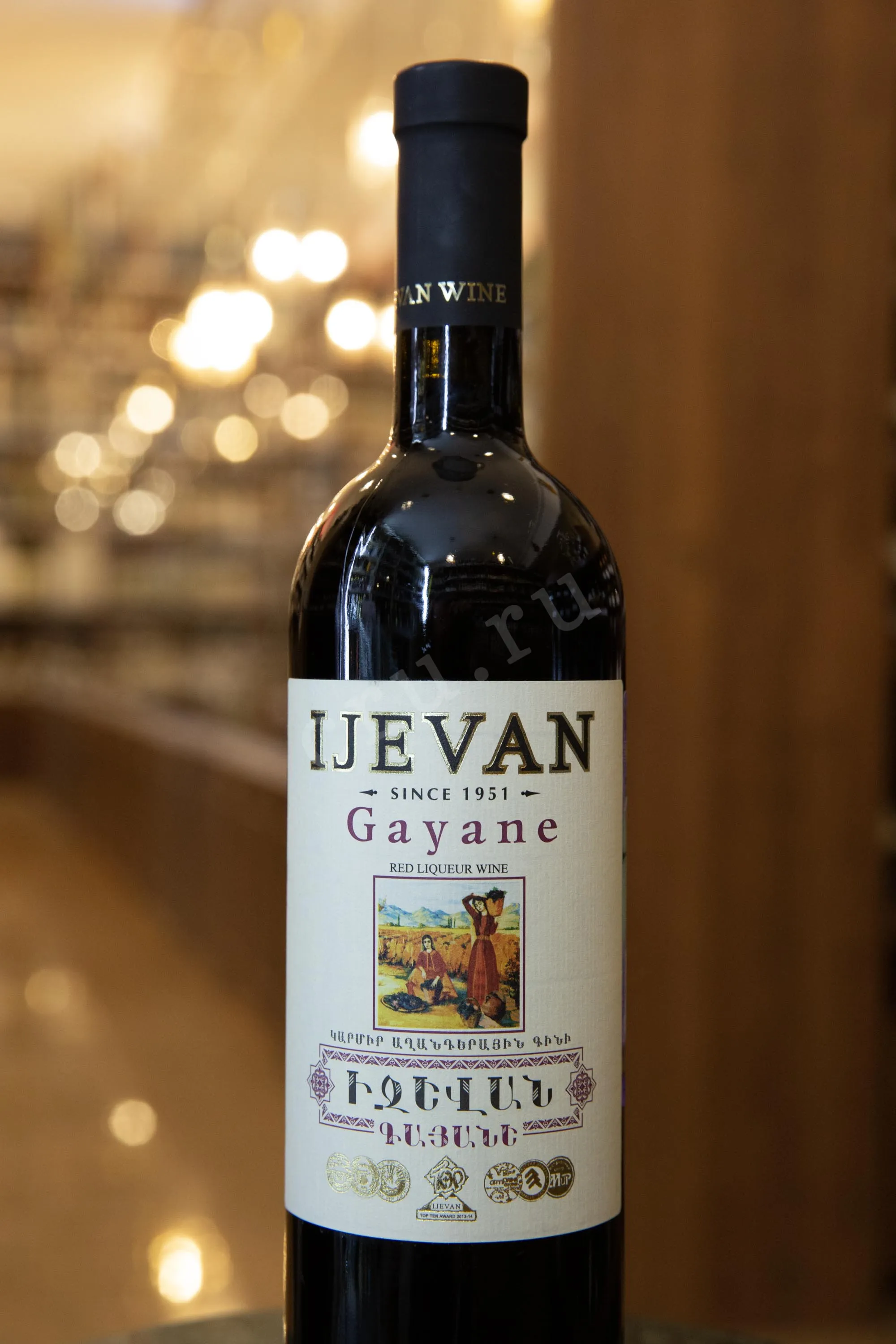Вино Ijevan Gayane 0,75 л — особый релиз Иджеванского завода, созданный в честь Святой мученицы Гаянэ, является достойным примером армянского креплёного виноделия. Для создания этого вина используют уникальные местные сорта, выращенные на солнечных виноградниках Араратской равнины. Урожай тщательно отбирается и вручную проходит процесс винификации, при котором ферментация останавливается добавлением собственного виноградного спирта, полученного из тех же сортов.