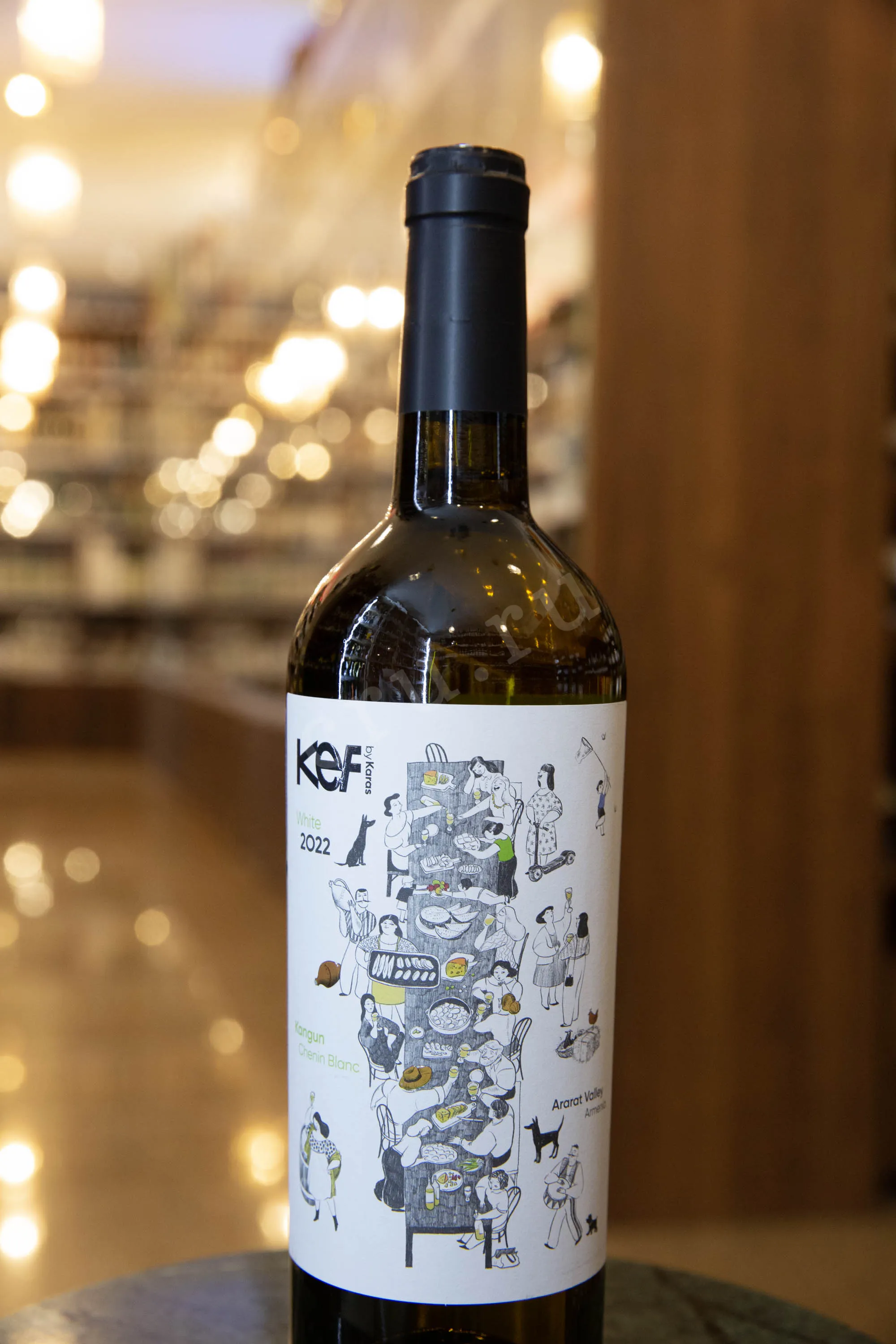 Белое сухое вино Kef by Karas White создаёт винодельческое хозяйство "Тиеррас Де Армения", чьи виноградники располагаются в Армавирской области. Для производства используется гармоничное сочетание местного сорта Кангун и французского Шенен Блана, которые произрастают в условиях горного микроклимата и минеральных почв. Аккуратный ручной сбор и бережная винификация в нейтральных ёмкостях позволяют сохранить свежесть винограда и тонко подчеркнуть изящные нюансы каждого сорта.