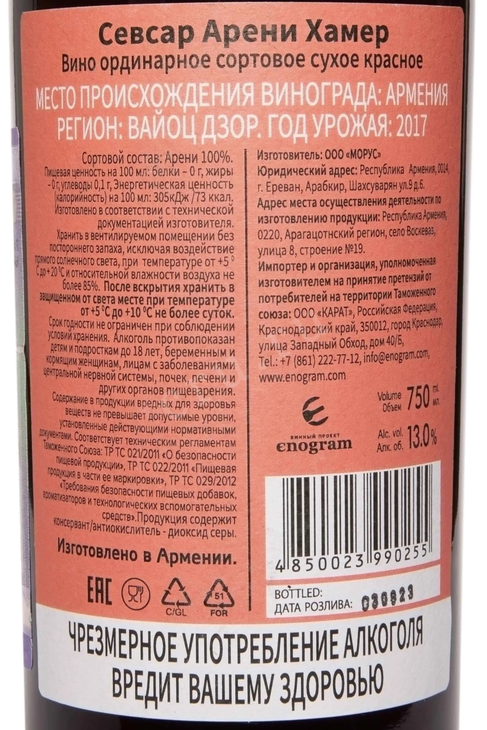 Sevsar Areni Hamer Voyots Dzor 0.75 л купить - Армянское вино Вино Севсар Арени Хамер Вайоц Дзор цена в магазине