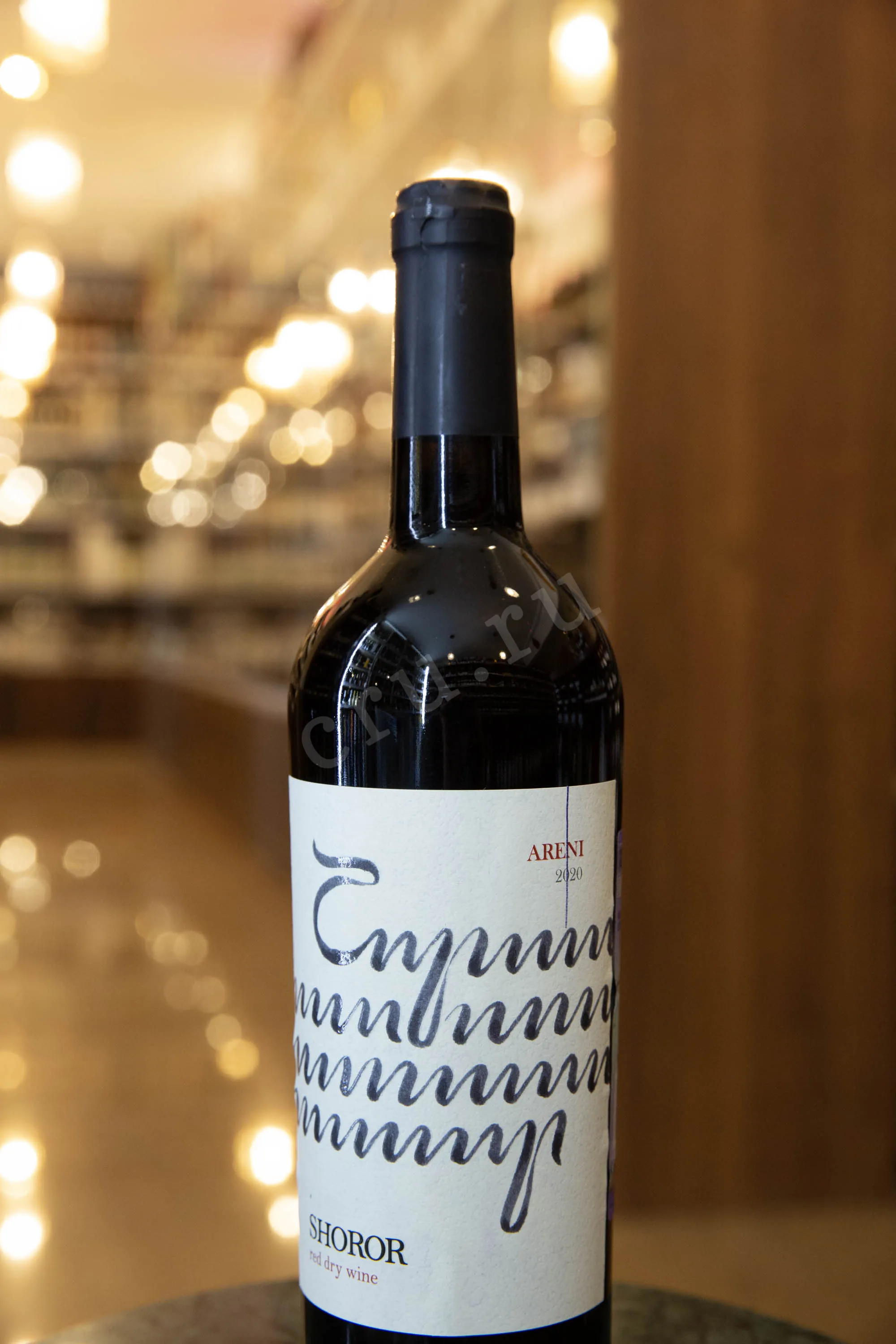 Красное сухое вино Shoror Areni 0,75 л — элегантное, моносортовое, произведено ООО «РЛ Вайнс» из традиционного армянского сорта Арени, который культивируется в регионе Вайоц Дзор на Араратской равнине. Виноградники разбиты на склонах на высоте 1300 м над уровнем моря. Регион известен своими вулканическими почвами и континентальным климатом с резкими перепадами температур, что способствует развитию насыщенного вкуса у ягод. Вино производится с использованием традиционных методов: ферментация проходит в нержавеющих стальных емкостях при контролируемой температуре, после чего следует выдержка на тонком осадке в течение нескольких месяцев. Шорор Арени получило признание на международной уровне, завоевав серебряную медаль на конкурсе Concours Mondial de Bruxelles в 2023 году .