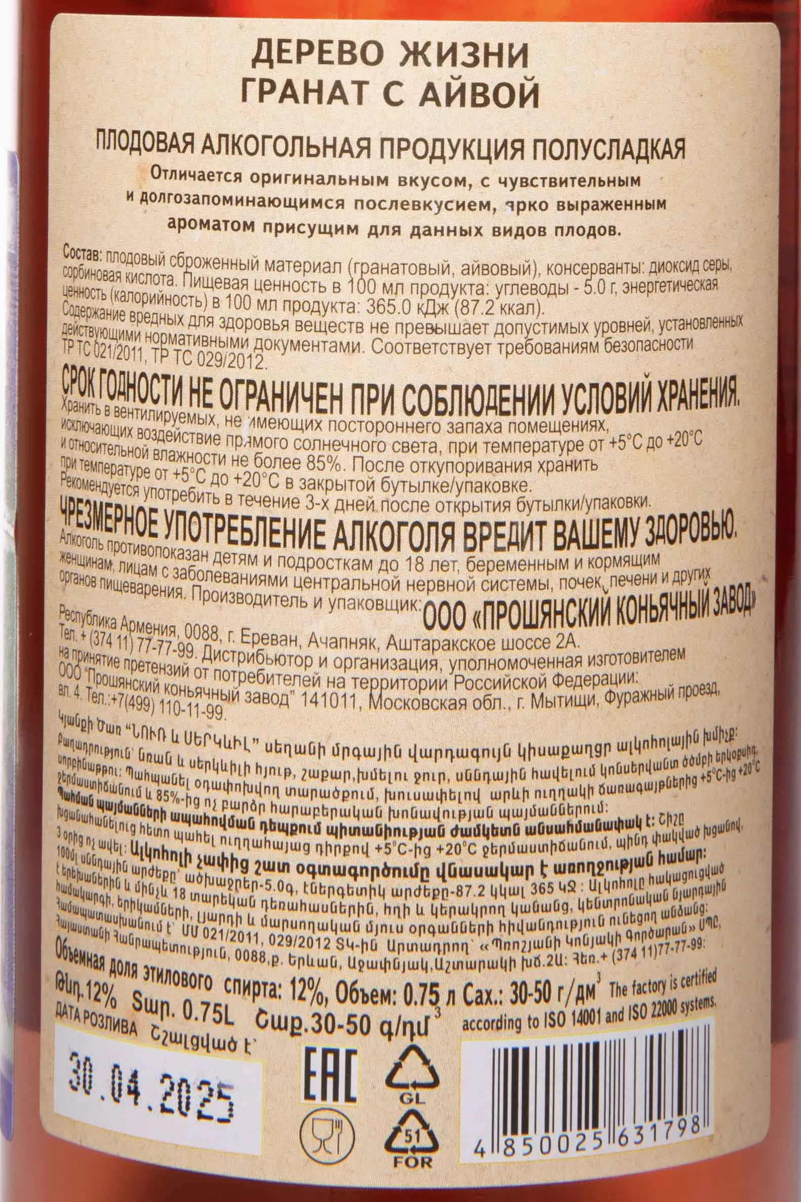 Tree Of Life Pomegranate Quince 0.75 л купить - Армянское вино Дерево жизни Гранат с Айвой цена в магазине