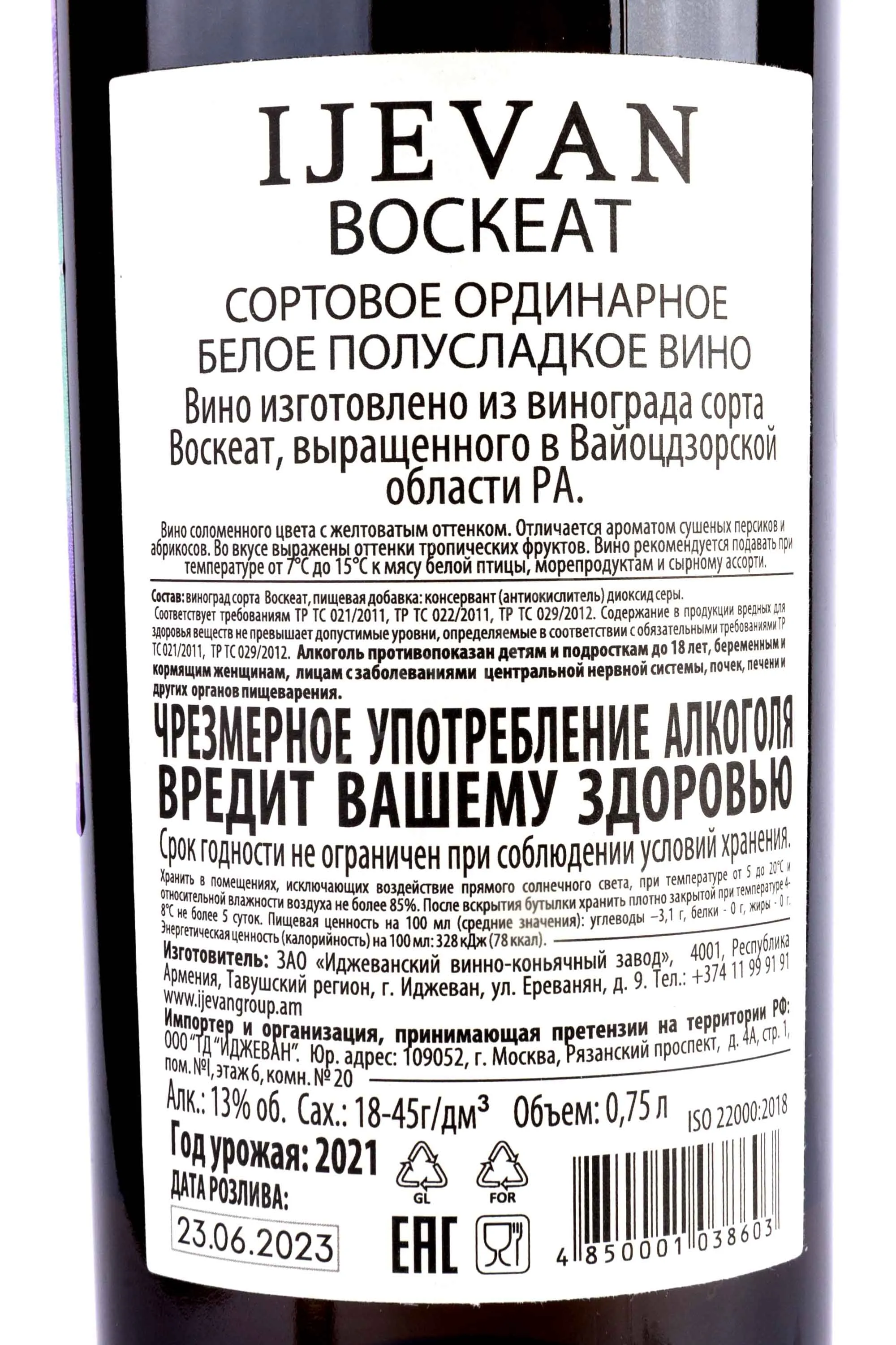 Вино Voskehat Ijevan in tube 0,75 л — утончённое белое полусладкое вино от Иджеванского винно-коньячного завода, созданное из местного армянского винограда Воскеат, выращенного на высокогорных виноградниках Вайоц Дзора. Уникальный климат этой местности, характеризующийся ярким солнцем и прохладными ночами, придаёт ягодам глубокий вкус и насыщенность. Вино упаковано в элегантный тубус, подчёркивающий его премиальный статус и отлично подходящий для подарка.