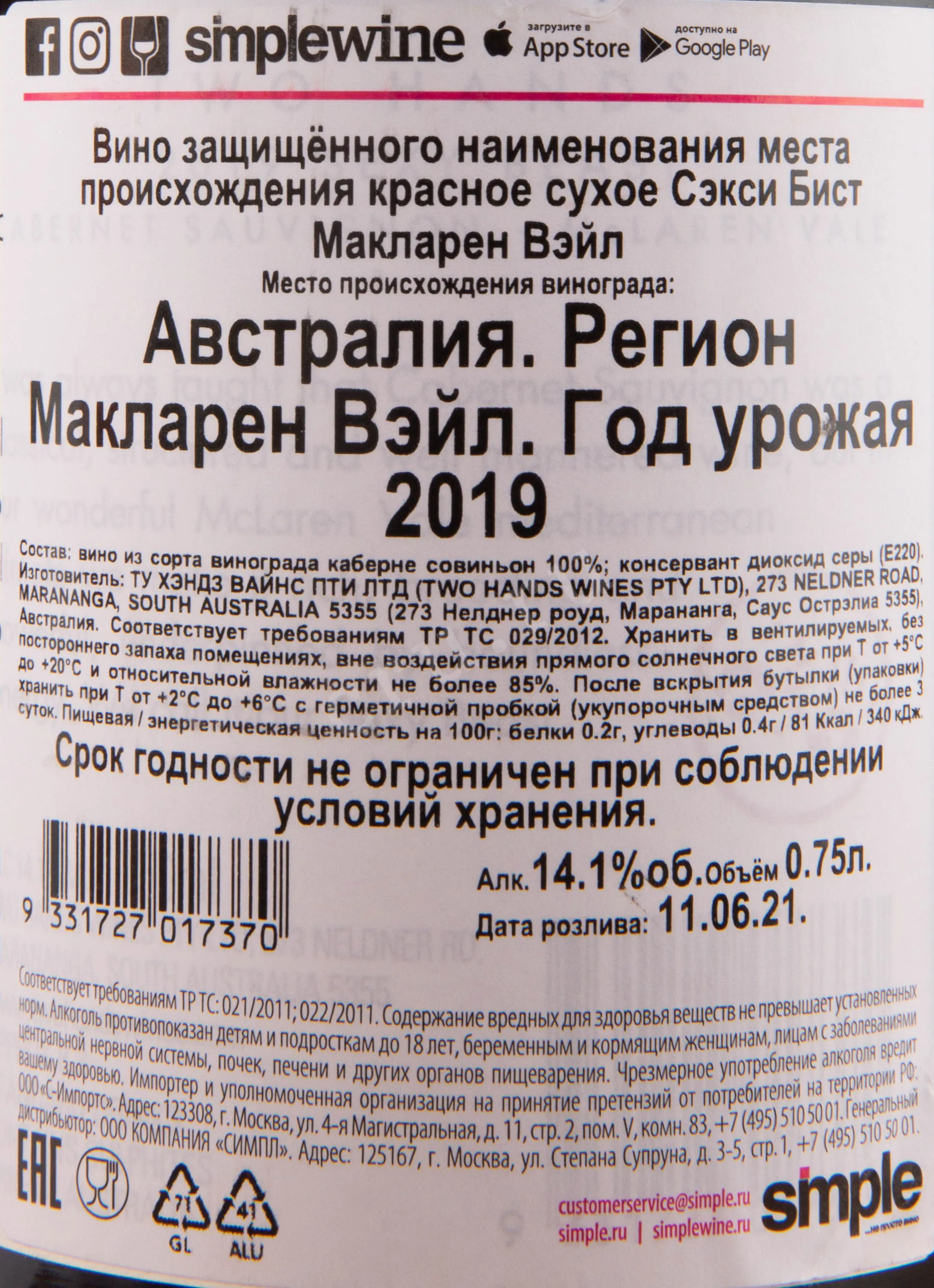 Красное сухое вино Sexy Beast McLaren Vale 0,75 л входит в премиальную коллекцию моносортовых вин известного австралийского бренда и создано из винограда, произрастающего на плантациях в долине МакЛарен. Собранный с каждого участка урожай винифицируется отдельно. Ферментация проводилась в ферментерах открытого типа с регулярной насосной перекачкой сусла три раза в день, что способствовало полному извлечению из ягод цвета, вкуса и танинов. Мацерация на кожице длилась 14 дней, после чего вино ассамблировали и поместили в дубовые бочки из французской древесины, из которых 15% - новые, а остальные имели возраст от 1 до 5 лет. Выдержка длилась 14 месяцев. Потенциал хранения полученного напитка – не менее 10 лет.