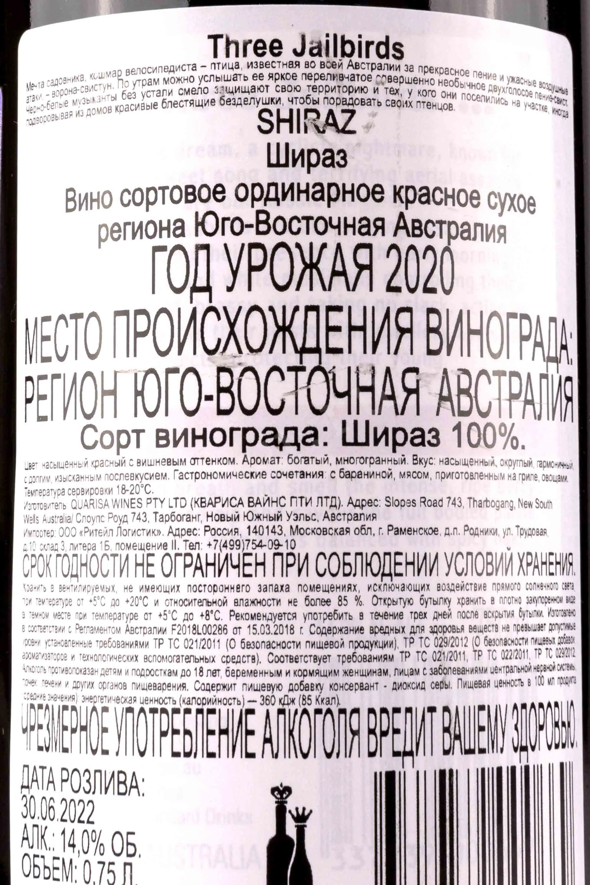 Three Jailbirds Shiraz 0.75 л купить - Австралийское вино Три Джейлбёрдс Шираз цена в магазинег. Москва, ул. Профсоюзная, д. 16/1010:00-22:00 Ежедневно+7 (495) 920-20-02info@cru.ru