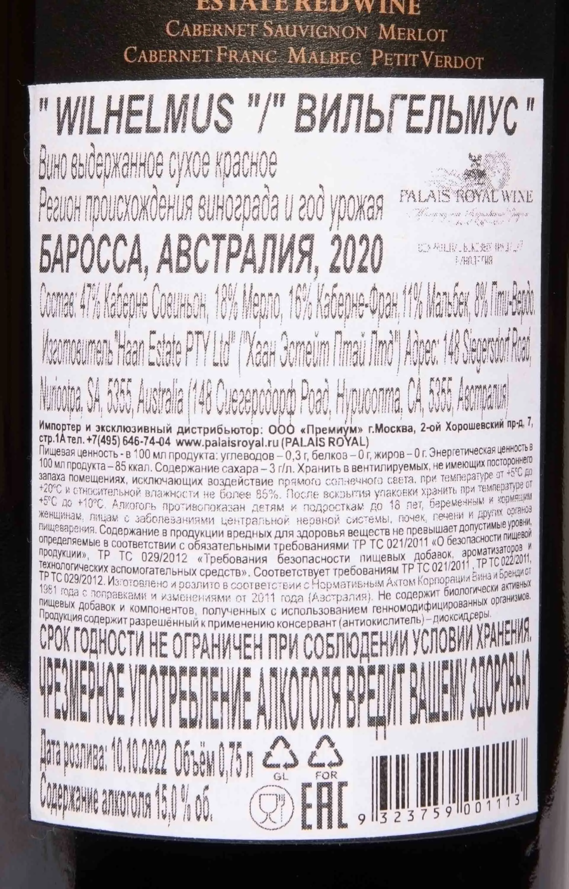 Вино Haan Wines Wilhelmus 2020 0.75 л создано из тщательно отобранных ягод, выращенных в экологически чистом регионе, где уникальные климатические условия способствовали раскрытию их потенциала. Урожай собирали вручную ранним утром, чтобы максимально сохранить свежесть плодов, а затем выдерживали в бочках из французского дуба в течение 18 месяцев. Благодаря длительной выдержке напиток приобрёл глубокий, многогранный характер и неповторимые оттенки вкуса.