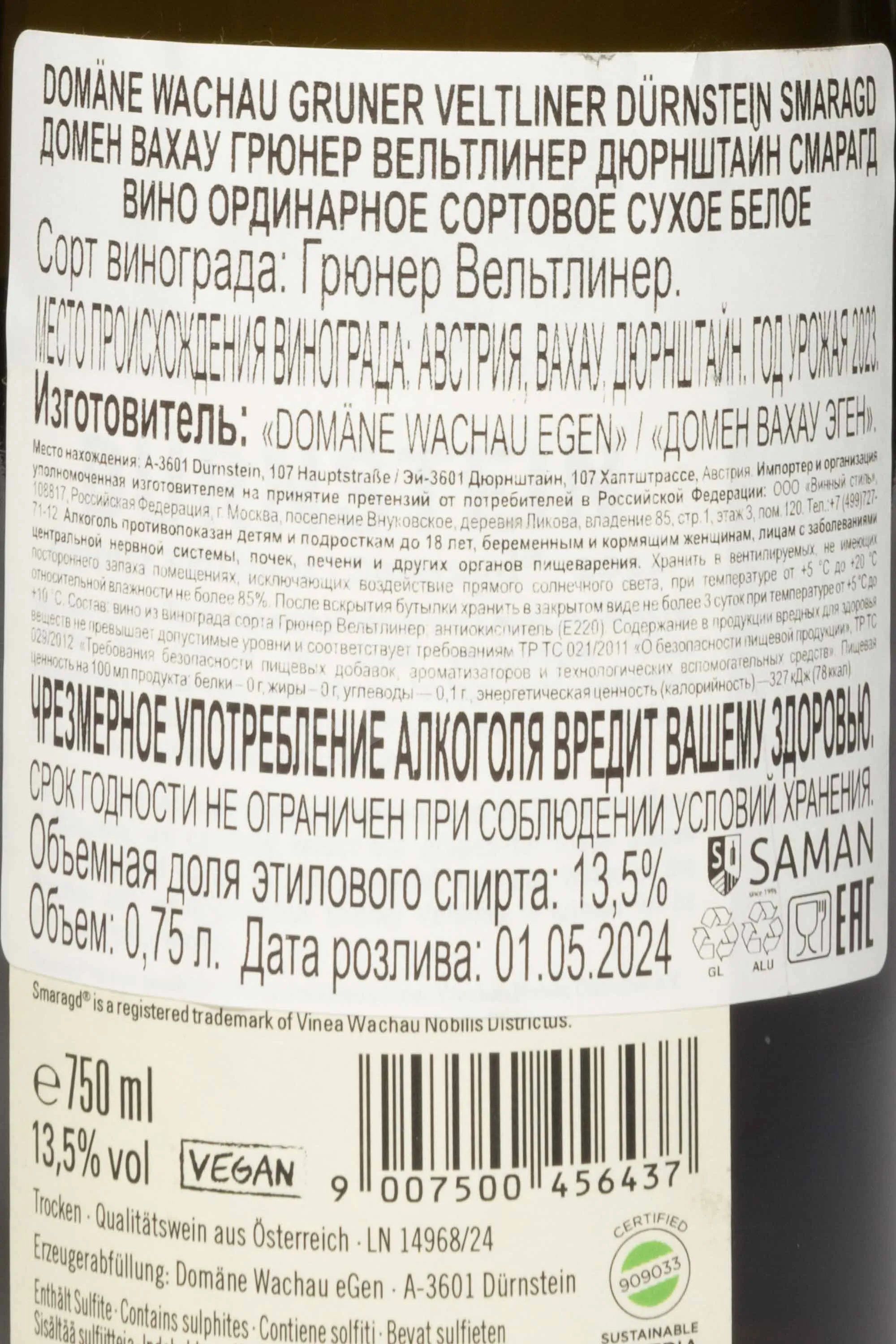 Изготовитель: Domane Wachau EGEN