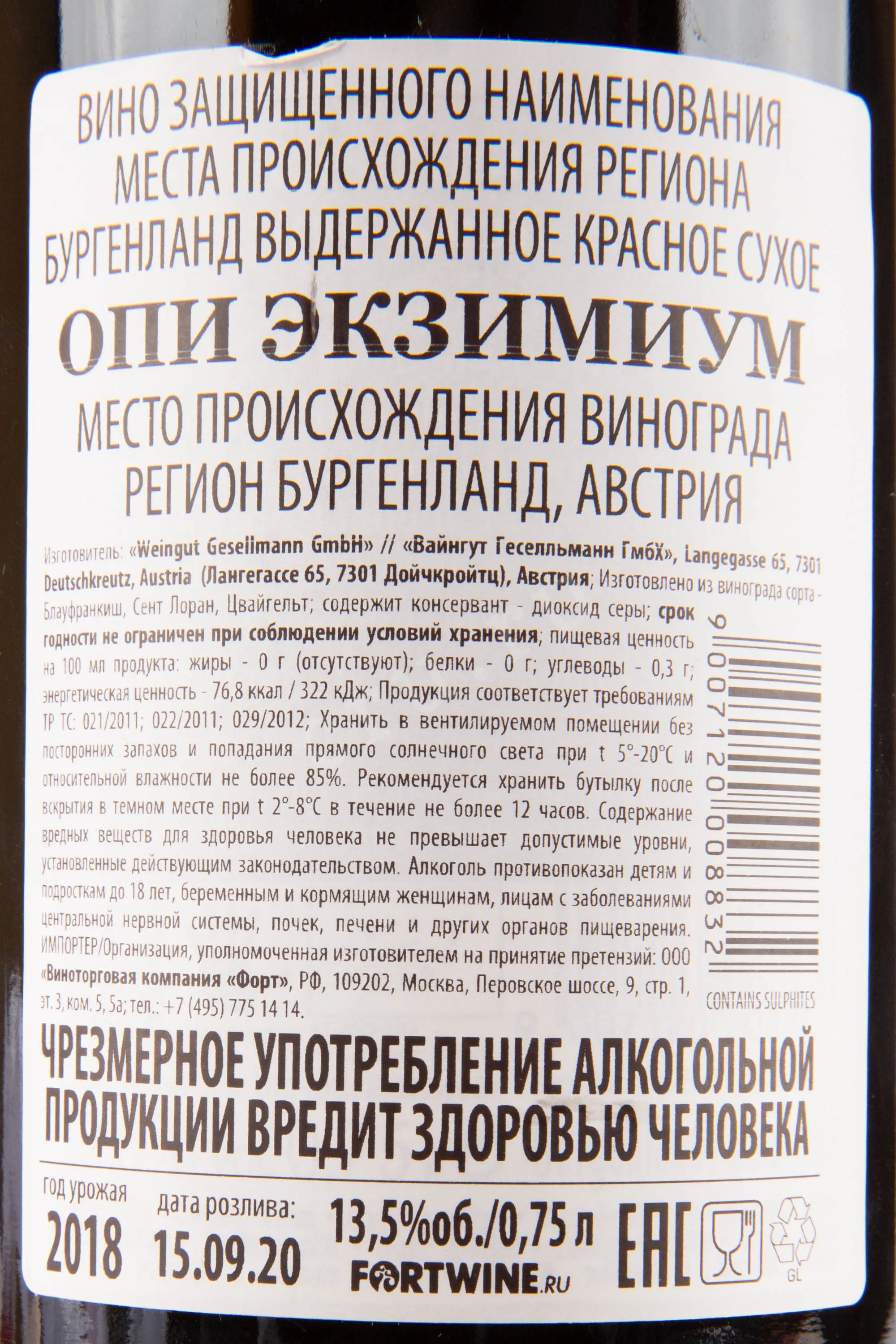 Вино Gesellmann OP Eximium Cuvee №31 2019 0.75 л создано из тщательно отобранного винограда с участков, расположенных в регионе Бургенланд, Австрия. Урожай собирали вручную на каменистых склонах с богатыми минералами почвами, что придало напитку характерный терруарный стиль. Выдержка происходила в дубовых барриках разной степени обжига, благодаря чему напиток приобрёл глубокий, сложный и многогранный профиль, подчеркнутый тонкими оттенками древесины и специй.