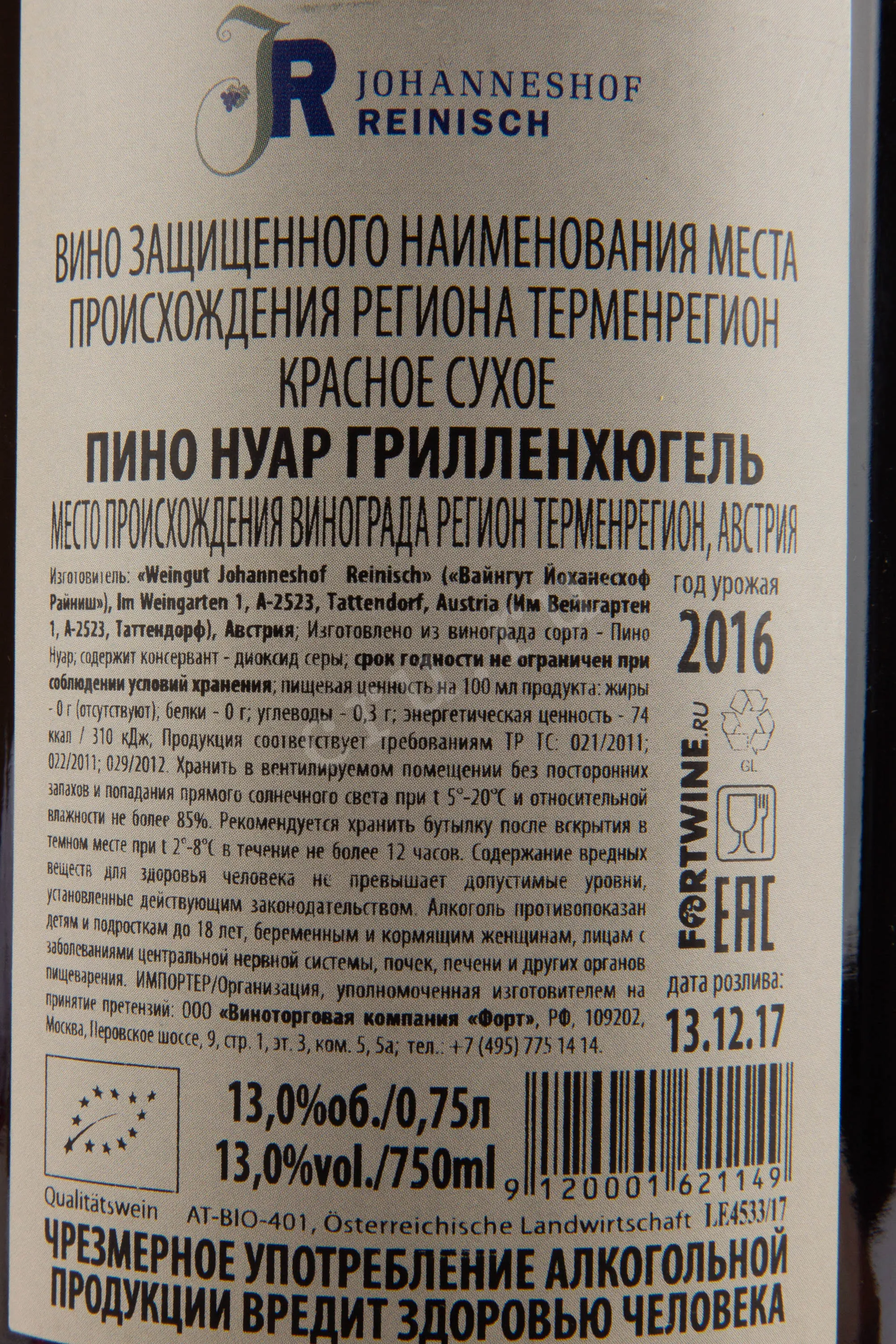 Вино Grillenhugel Pinot Noir 2016 0.75 л произведено на небольшом семейном хозяйстве в живописном регионе Нижняя Австрия. Урожай собирался вручную с виноградников, расположенных на склонах холмов с известково-глинистыми почвами, характерными для местного терруара, который обеспечивал ягодам деликатность и особую минеральность. После сбора виноград бережно сортировался и подвергался традиционной ферментации в открытых чанах с регулярным перемешиванием шапки мезги, что позволило добиться утончённого, гармоничного вкуса с выраженным характером.