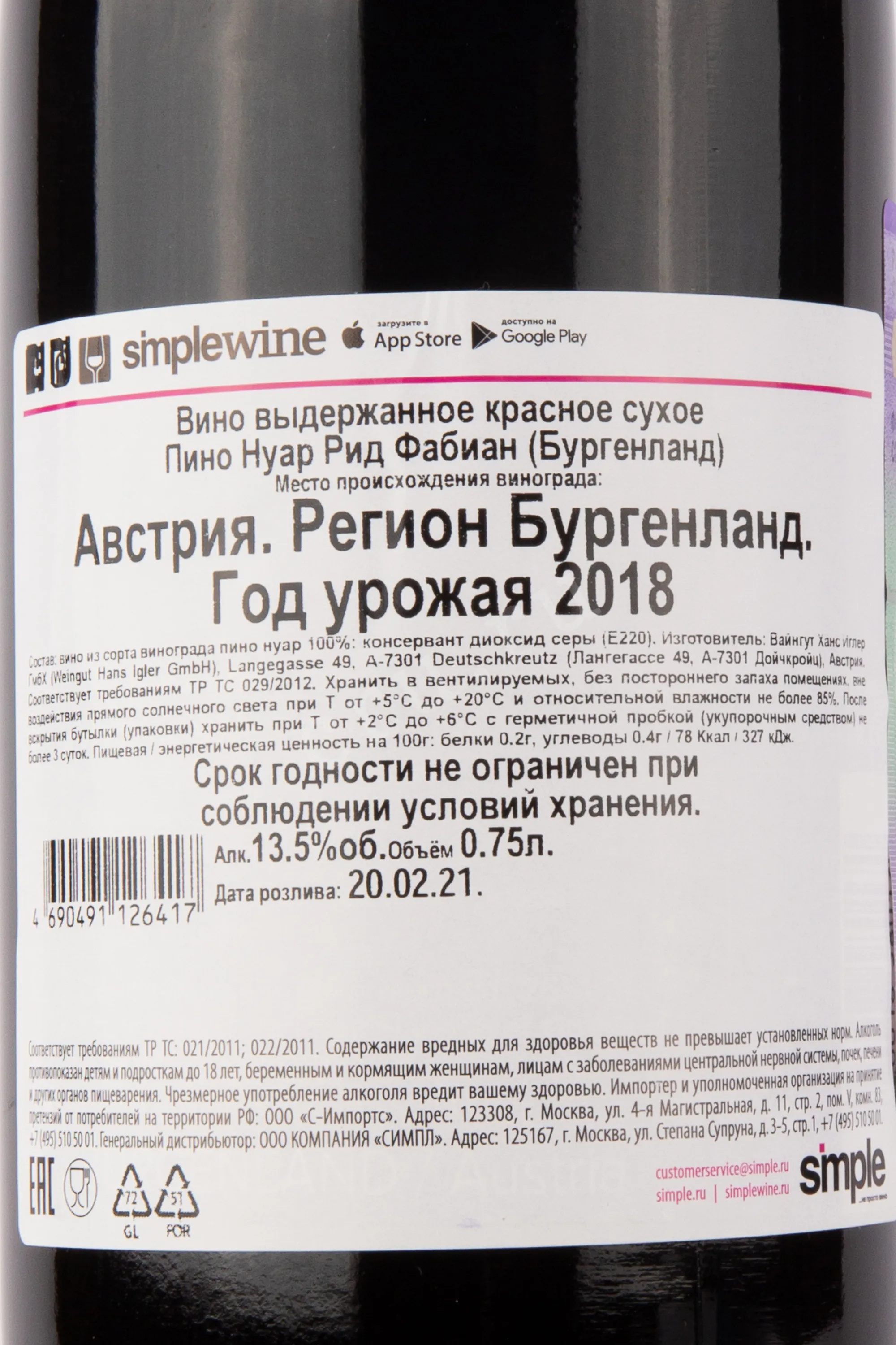 Ханс Иглер Пино Нуар Рид Фабиан 2018 0.75