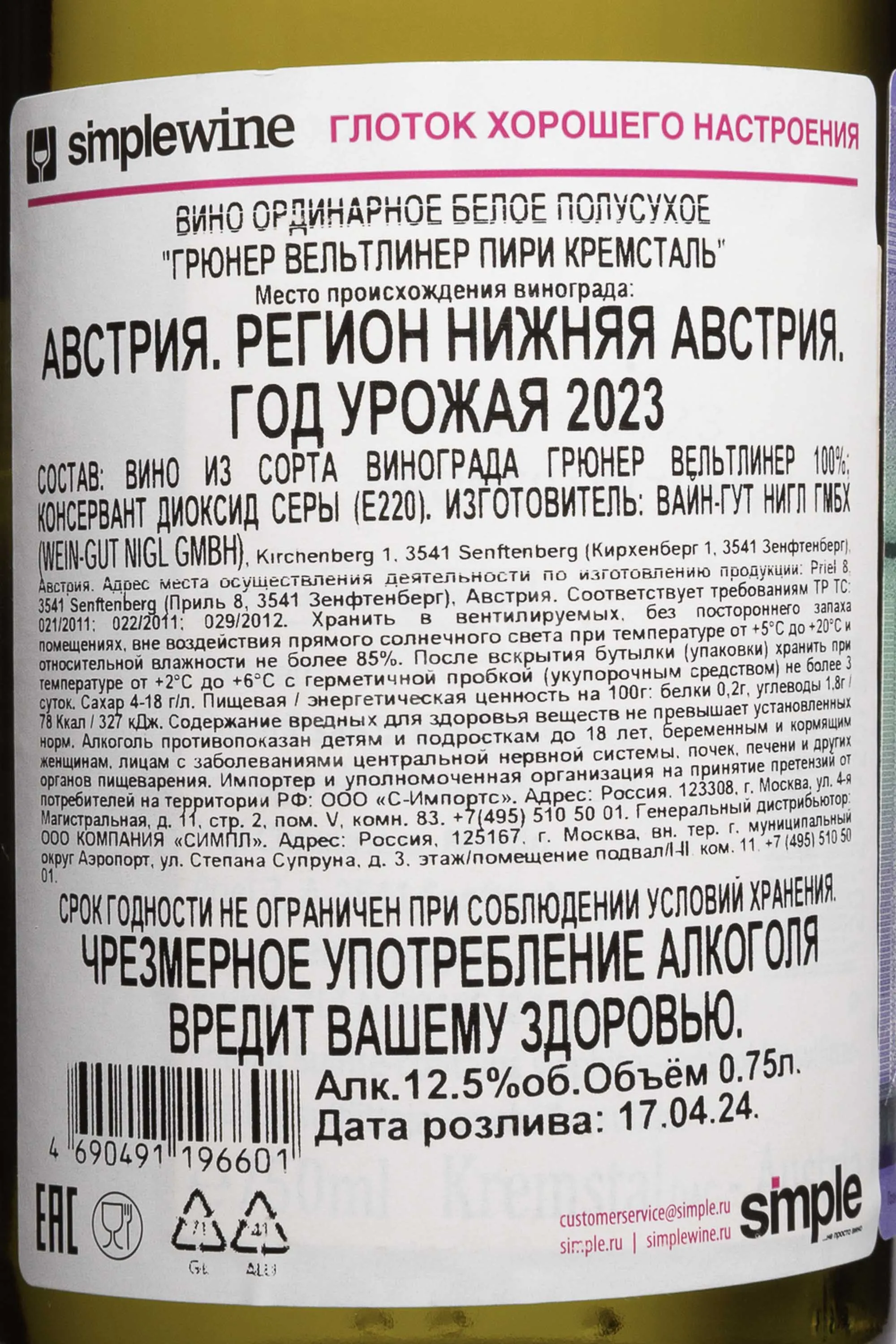 Вино Nigl Piri Gruner Veltliner Kremstal 0.75 л создано в сердце Нижней Австрии, где виноградники хозяйства Nigl раскинулись на склонах, защищённых от холодных ветров и согретых мягким солнечным светом. Урожай собирали вручную с террас, заложенных на известняковых и сланцевых почвах, что придало напитку минеральность и изысканную свежесть. Ферментация проходила в стальных резервуарах при контролируемой температуре, что позволило сохранить чистоту вкуса и природную ароматическую палитру. После выдержки на тонком дрожжевом осадке напиток приобрёл объемную текстуру и деликатную кремовую мягкость, характерную для вин из Кремсталя. Это выражение австрийской винодельческой традиции, где каждая деталь подчинена гармонии между природой и мастерством винодела.