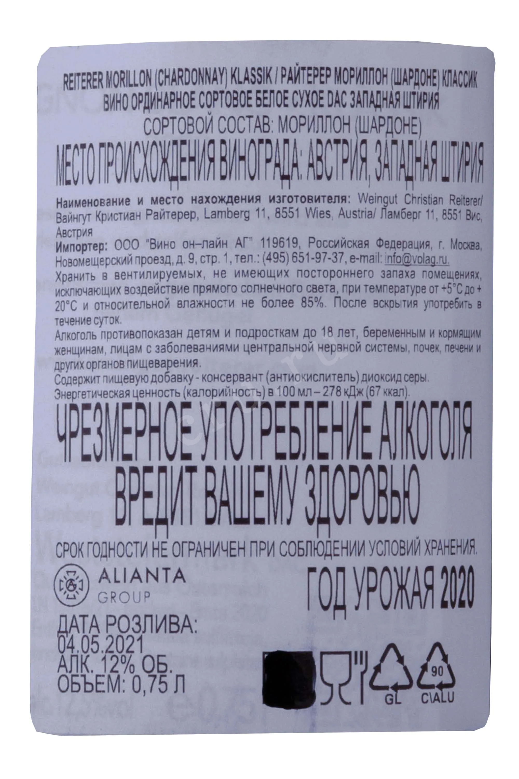 Вино Reiterer Morillon Klassik 0.75 л создаётся из тщательно отобранного винограда, выращенного на живописных склонах Западной Штирии, известной своим уникальным прохладным климатом и известняково-глинистыми почвами, которые придают напитку минеральность и элегантность. Урожай собирается вручную в утренние часы, после чего ягоды подвергаются бережному прессованию и ферментируются в стальных ёмкостях при контролируемой низкой температуре, что позволяет сохранить яркость вкуса, свежесть и неповторимую структуру напитка.