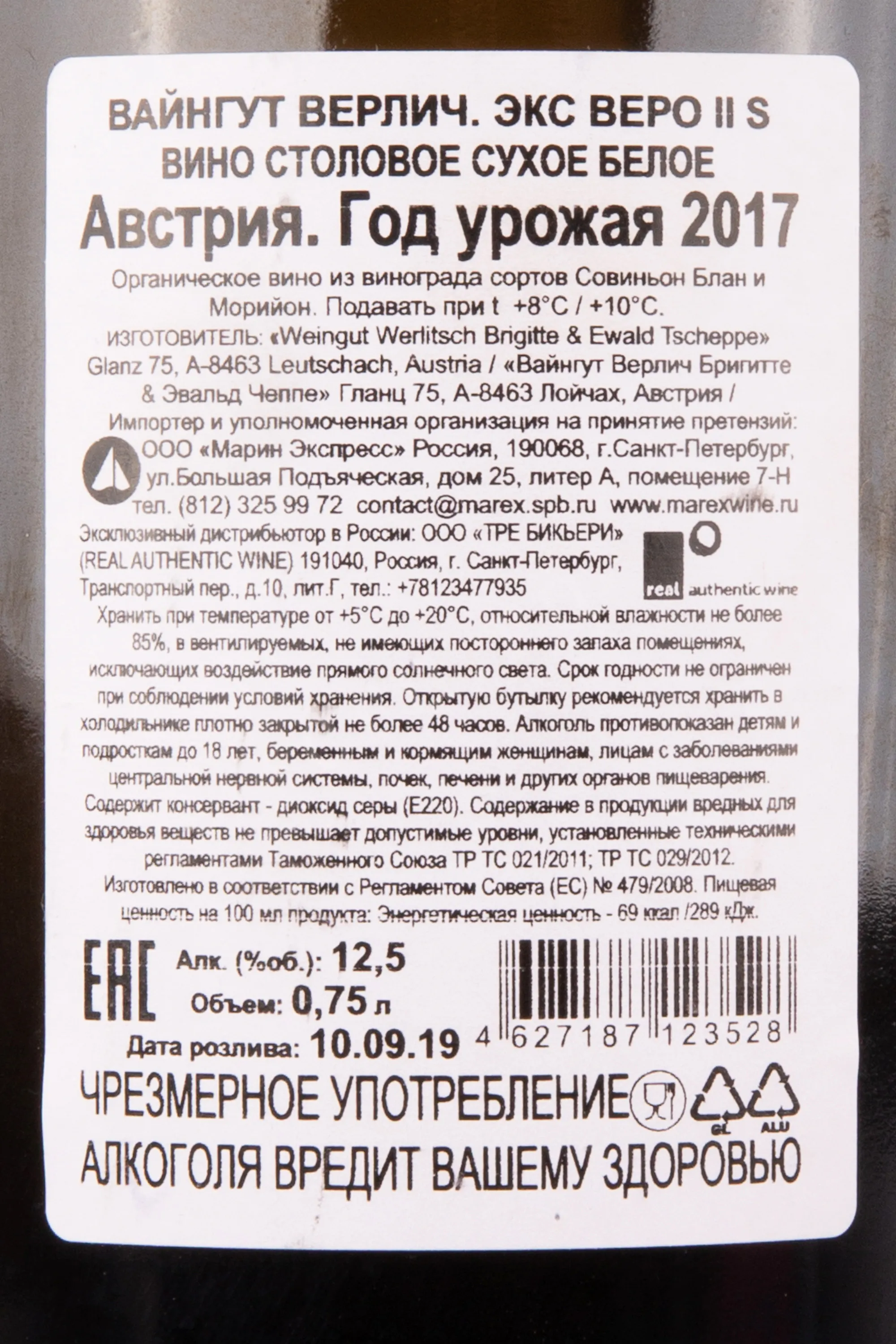 Вино Weingut Werlitsch Ex Vero II S 2017 0.75 л — авторское выражение философии натурального виноделия Штирии. Это купаж, произведённый без фильтрации, с минимальным вмешательством в процессы брожения и выдержки. Виноград собирается вручную с крутых биодинамических склонов южной Австрии, где почвы из известняка и глины придают вину минеральную сложность. Ферментация проходит в больших старых деревянных бочках с использованием естественных дрожжей. Выдержка на осадке длится более 18 месяцев, что формирует богатую текстуру и структурированное тело. Weingut Werlitsch придерживается принципов сертифицированного земледелия, благодаря чему каждая бутылка отражает характер урожайного года и терруара.
