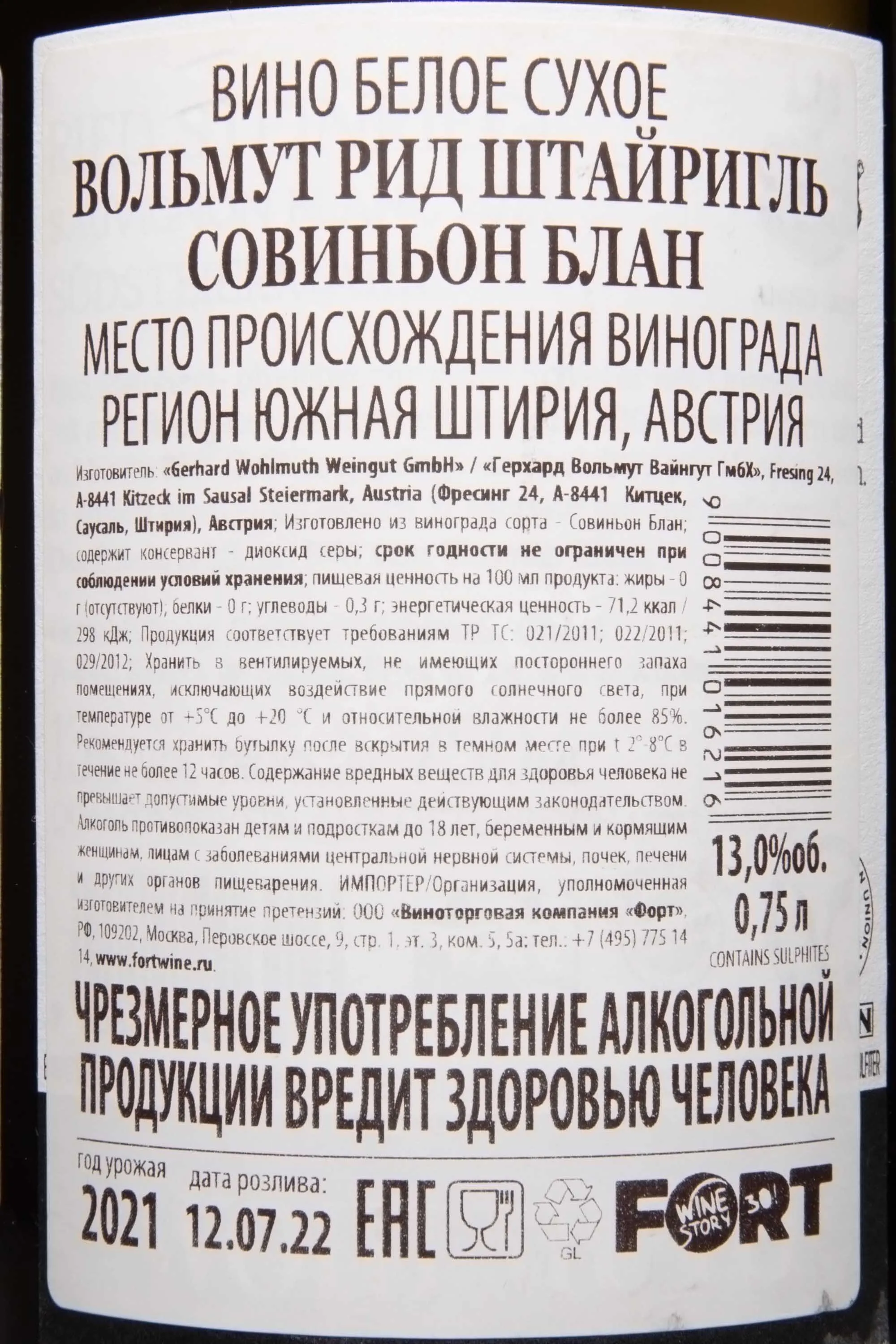 Wohlmuth Ried Steinriegl Sauvignon Blanc 0.75 л купить - Австрийское вино Вольмут Рид Штайригль Совиньон Блан цена в магазинег. Москва, ул. Профсоюзная, д. 16/1010:00-22:00 Ежедневно+7 (495) 920-20-02info@cru.ru