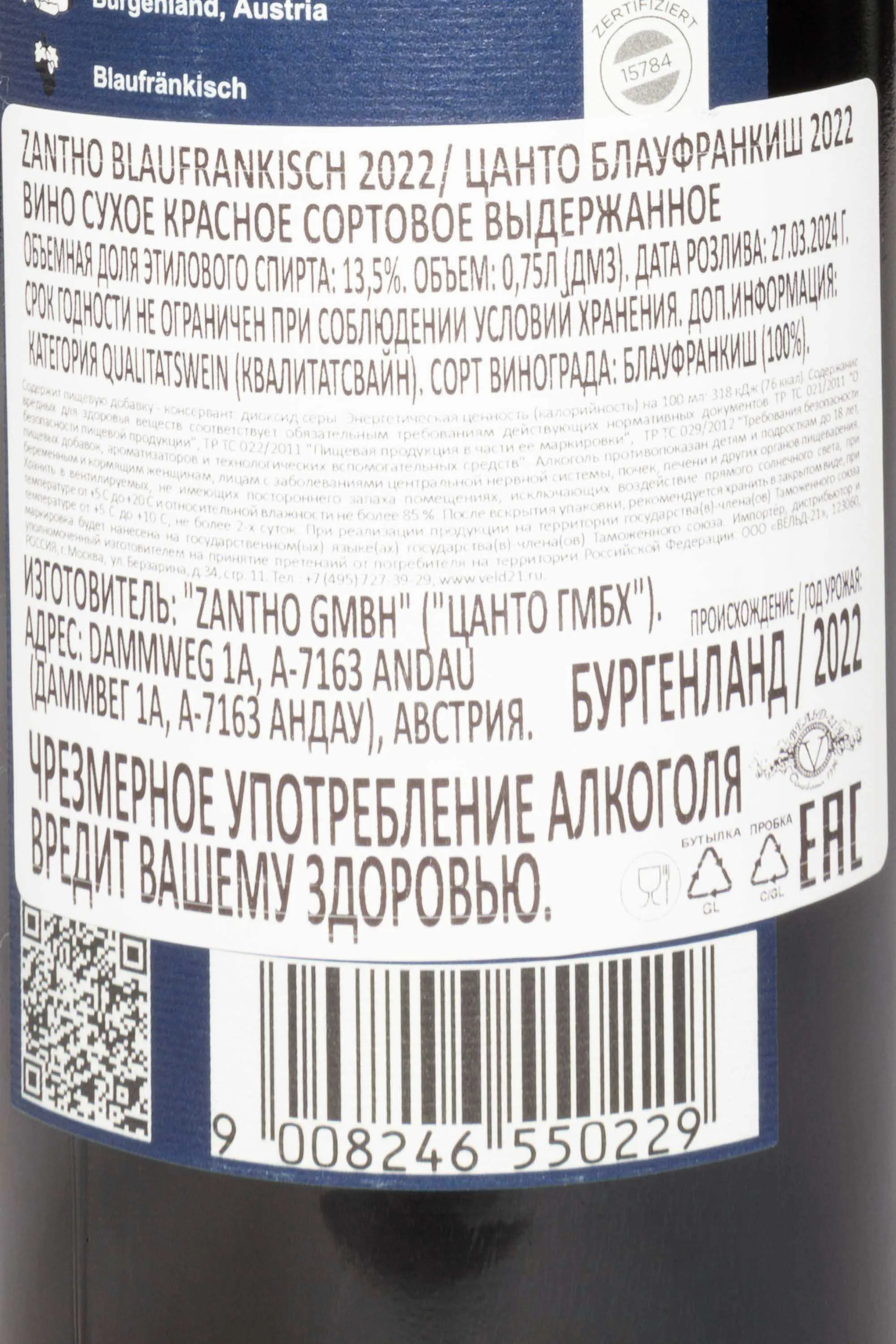 Красное сухое вино Zantho Blaufrankisch 2022 года 0,75 л создано из классического для Австрии сорта Блауфранкиш, известного своей яркой кислотностью и насыщенной фруктовой палитрой. Виноград выращен в регионе Нойзидлерзее, где почвы сухие песчаные и минеральные, а климат жаркий. 2022 год выдался сложным: весна была прохладной и малосолнечной, но лето оказалось теплым и сухим, что позволило ягодам достичь хорошей зрелости. Сусло проходило ферментацию в резервуарах из нержавеющей стали при контролируемой температуре, что помогло сохранить свежесть и ароматическую яркость. Вино выдерживалось около года на тонком осадке (15% в дубе), что придало ему глубину вкуса и округлость. Винтаж 2022 года был высоко оценен экспертами Wine Enthusiast и Falstaff Magazine.