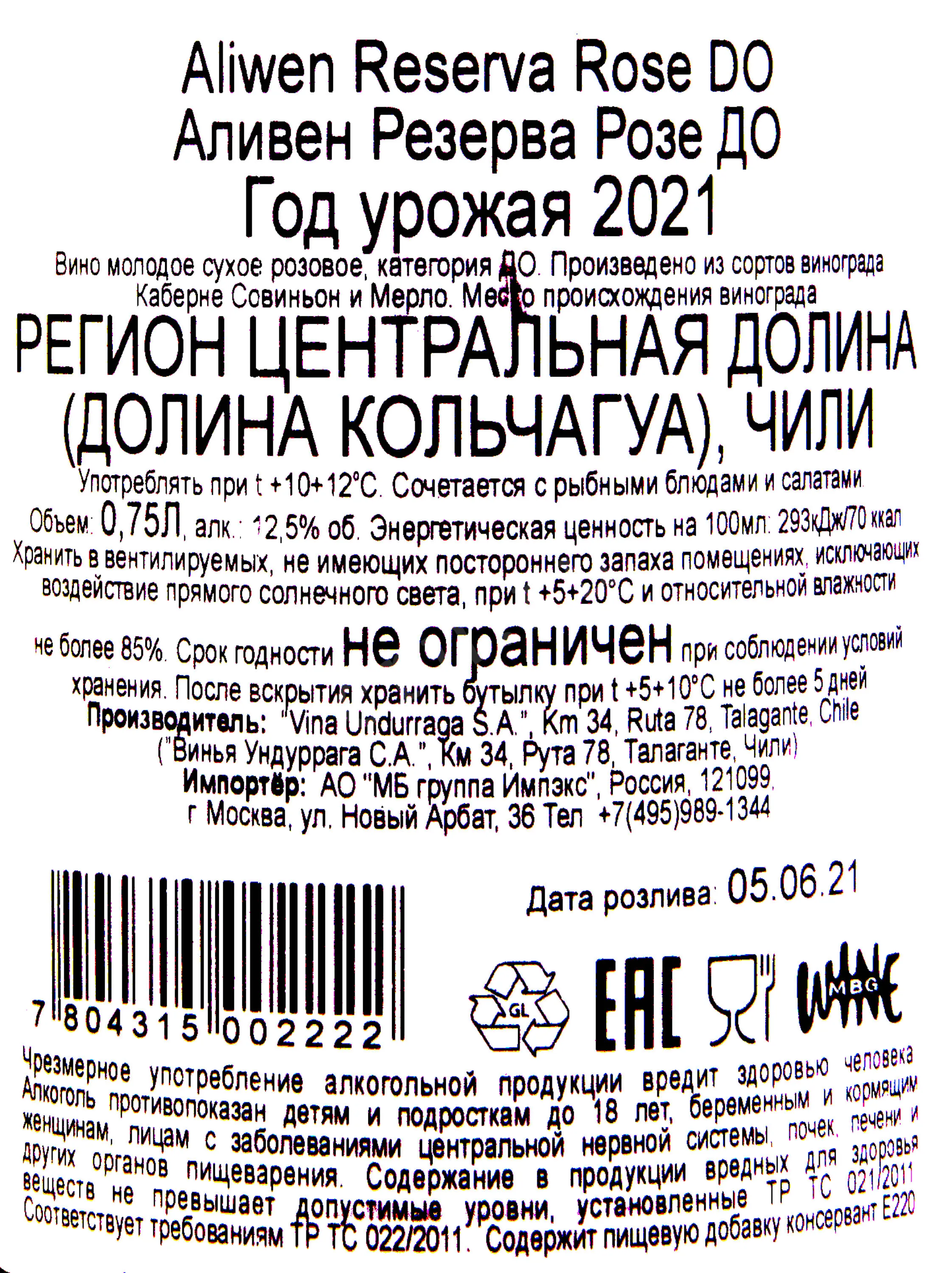 Aliwen Rose Reserva 0.75 л купить - Чилийское вино Аливен Резерва Каберне Розе ДО цена в магазине г. Москва, ул. Профсоюзная, д. 16/10 10:00-22:00 Ежедневно +7 (495) 920-20-02 info@cru.ru