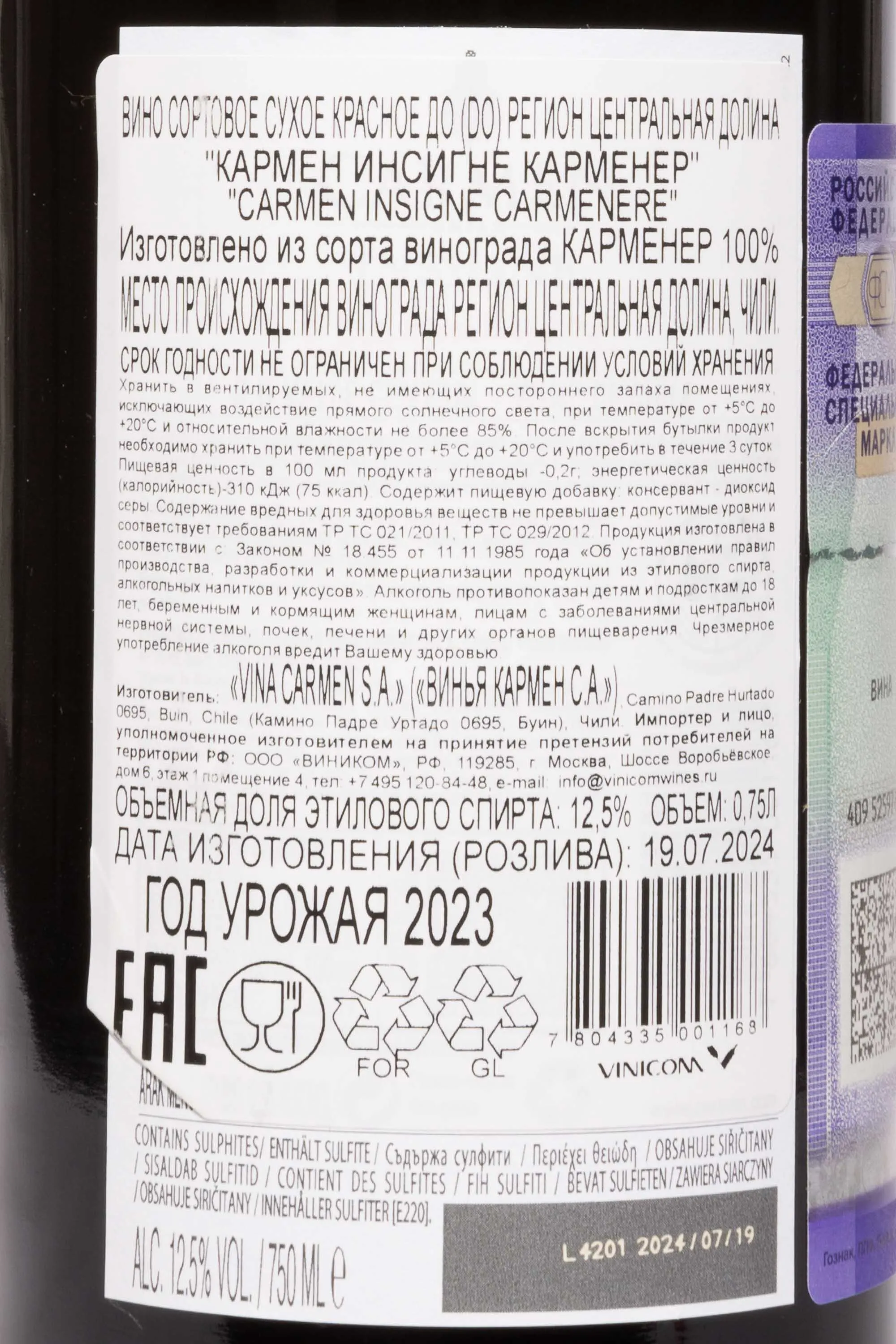 Вино Carmen Insigne Carmenere 2023 0.75 л