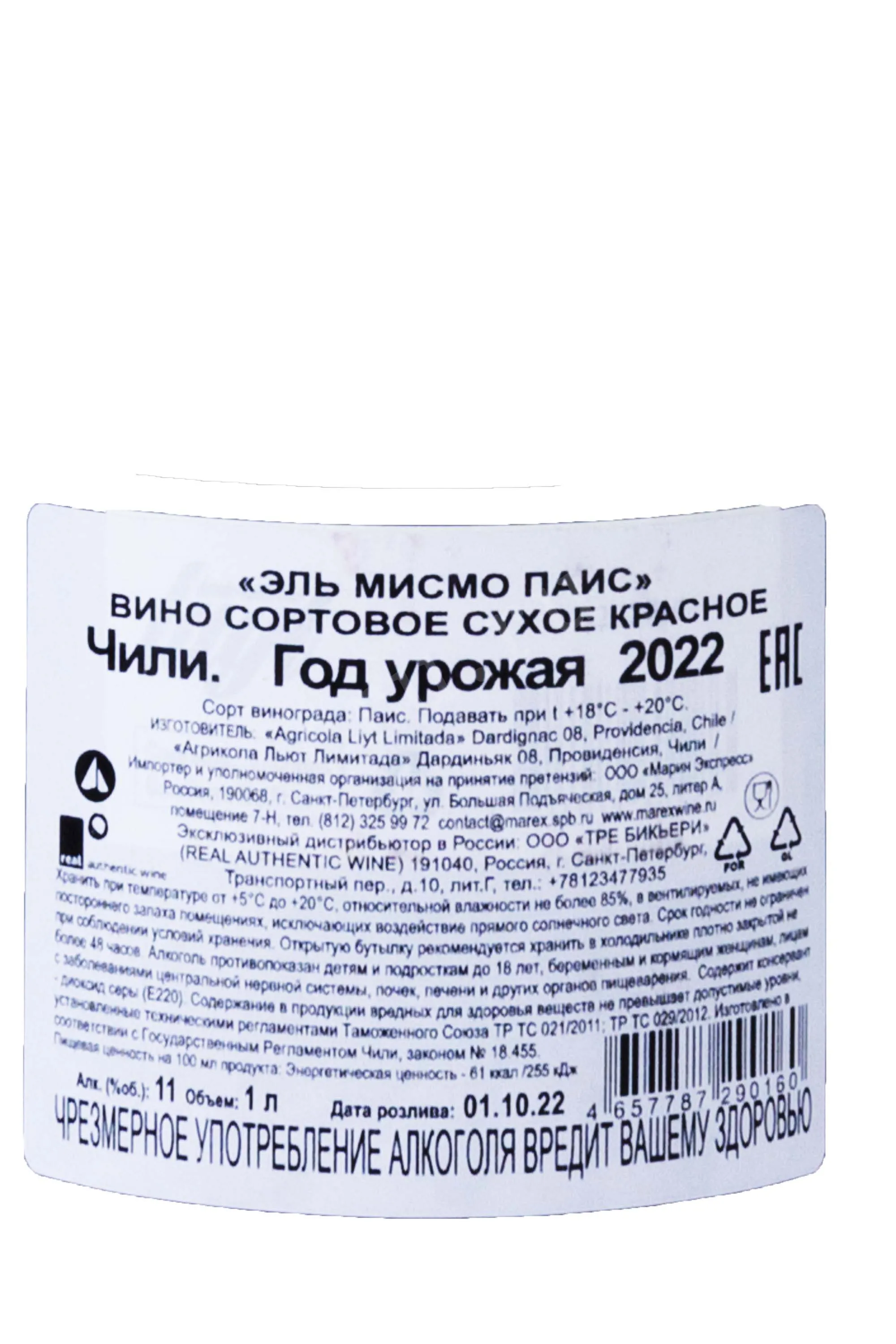 El Mismo Pais 1 л купить - Чилийское вино Эль Мисмо Паис цена в магазине г. Москва, ул. Профсоюзная, д. 16/10 10:00-22:00 Ежедневно +7 (495) 920-20-02 info@cru.ru